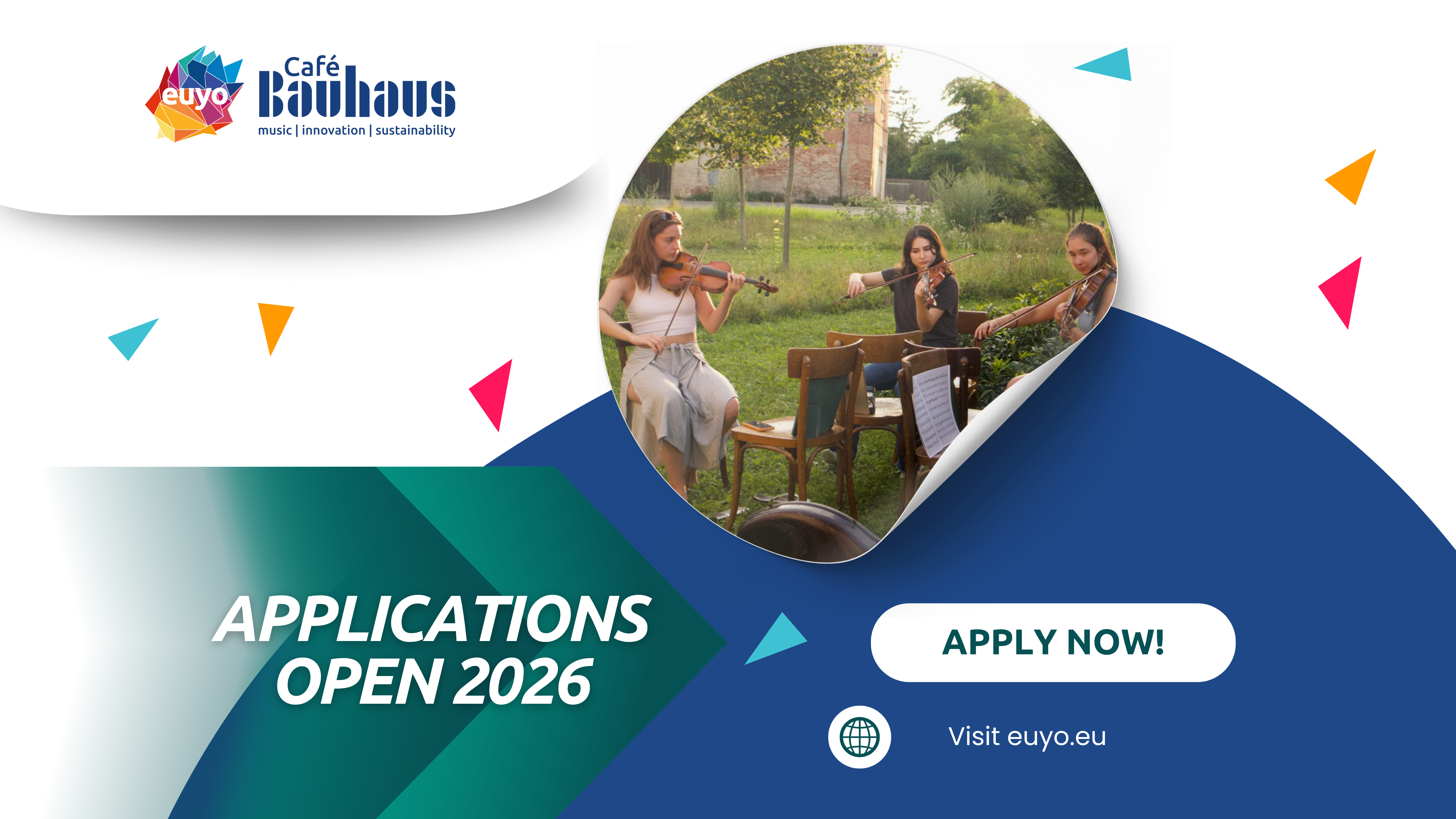 With only 3% of applicants securing a place each year, EUYO musicians are among the top emerging professional musicians across all 27 EU Member States. The Orchestra tours extensively every spring and summer, alongside year-round pan-European and international projects. Recognising also that music must be accessible locally, the EUYO began its Café Bauhaus Awards in 2021 with the goal of supporting its exceptional young artists to conceive and deliver beautiful, sustainable, and inclusive projects in their own communities.