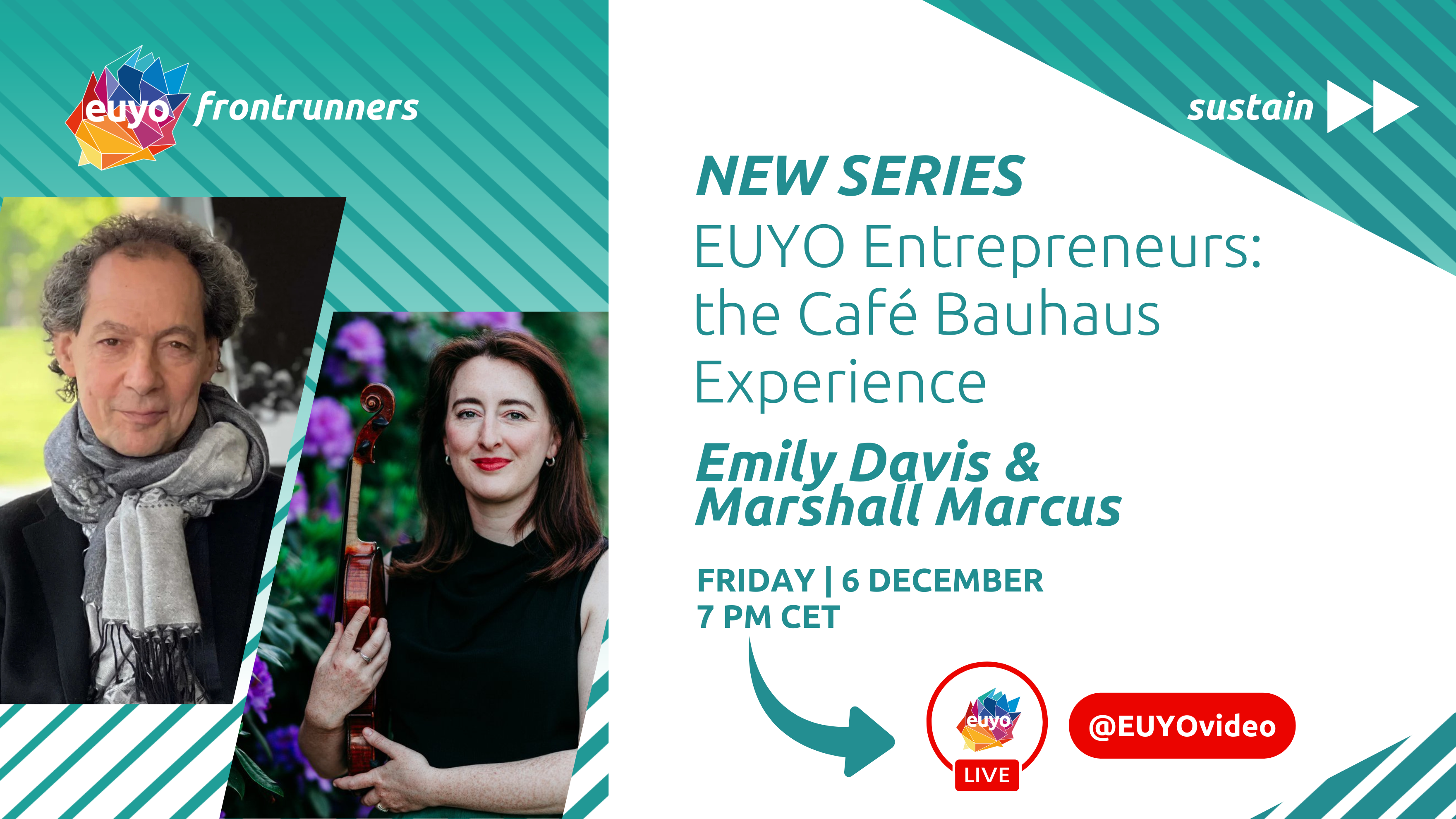 Our methodology has always focused on emerging creative professionals’ formal skill level as musicians, and their development as young people, notably through sequential Recruiting, Training, Performing, Evaluating, and Reviewing. This is embedded in Café Bauhaus through a series of planning, consultancy, and reporting sessions between applicants and the EUYO executive team.