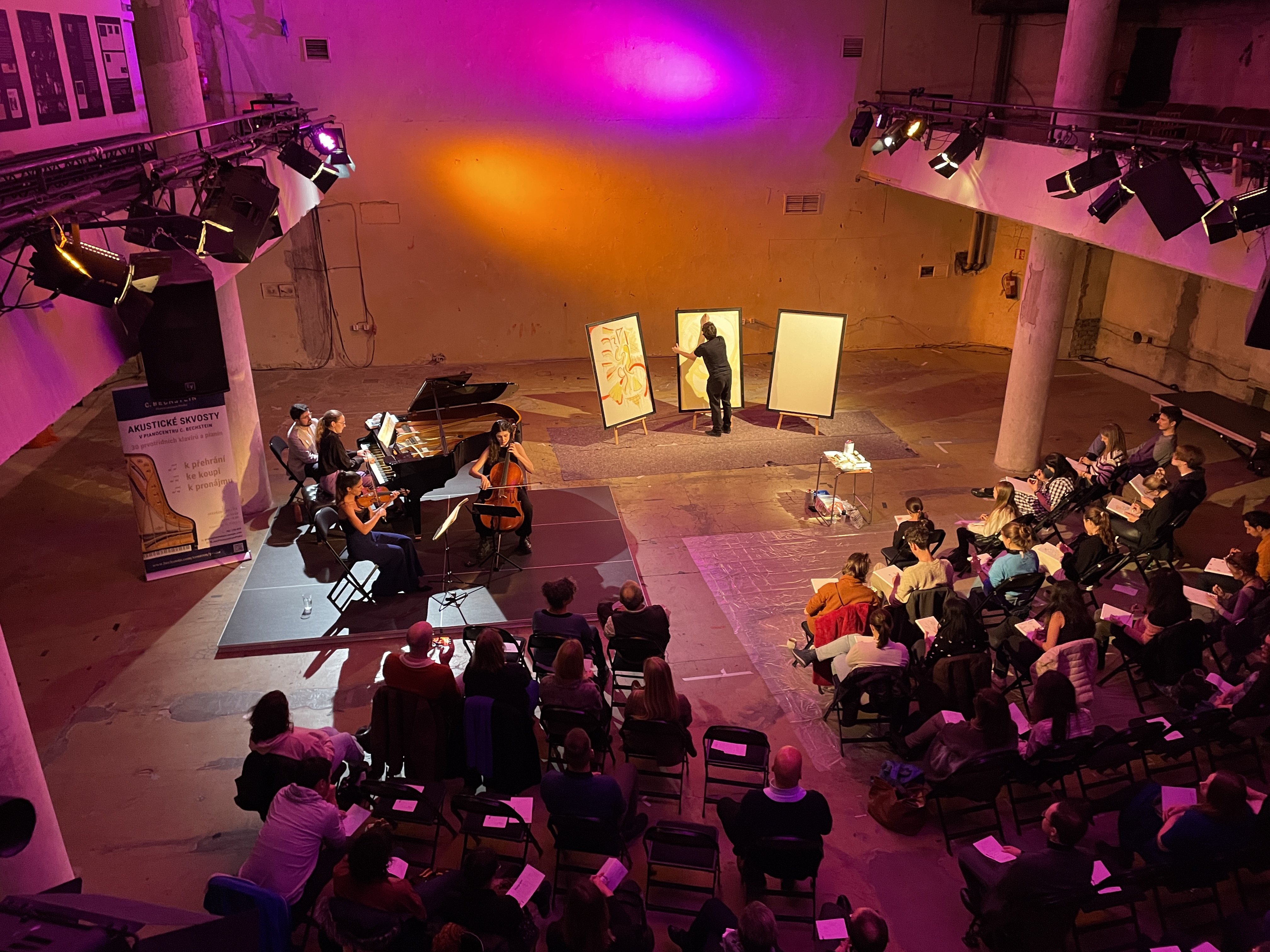 Collab’s Cordelia Piano Trio and painter Marius S. Binder created a live artwork on stage in response to the music. At the project’s Prague concert, audience members were given paints and canvases too. This expanded audience perception of the music in terms of colour, shape, and form, and was inviting for younger audiences and those new to classical music.