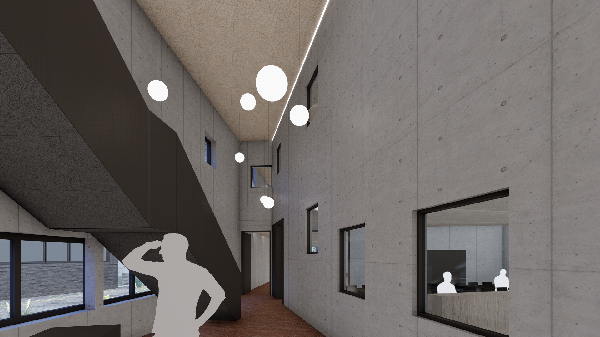 The administrative hub will be frequented by the public and will serve as a meeting place for citizens, hosting events such as weddings, town council meetings, and offering access to the library. This consolidation will enhance synergy between the public entities.