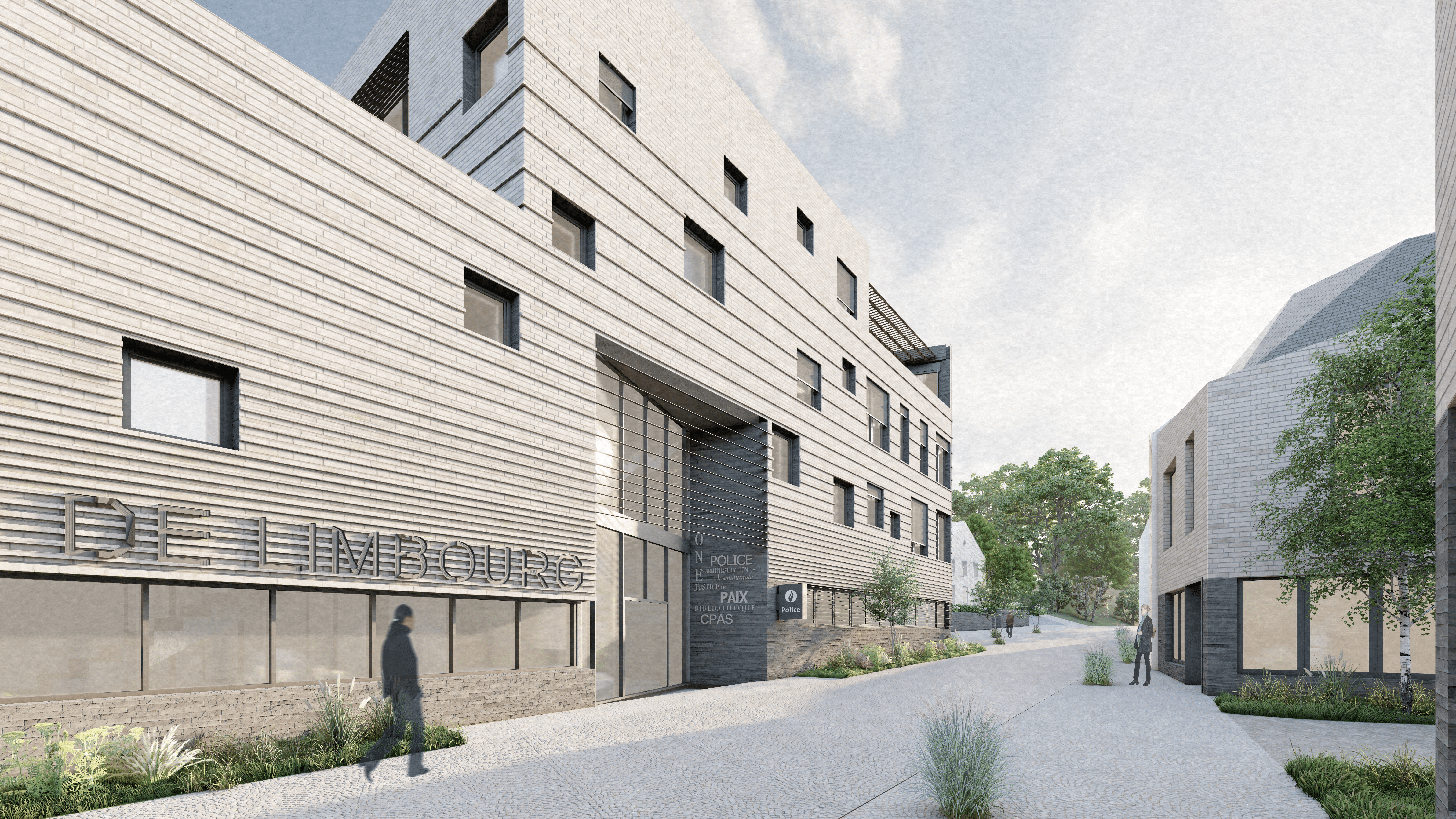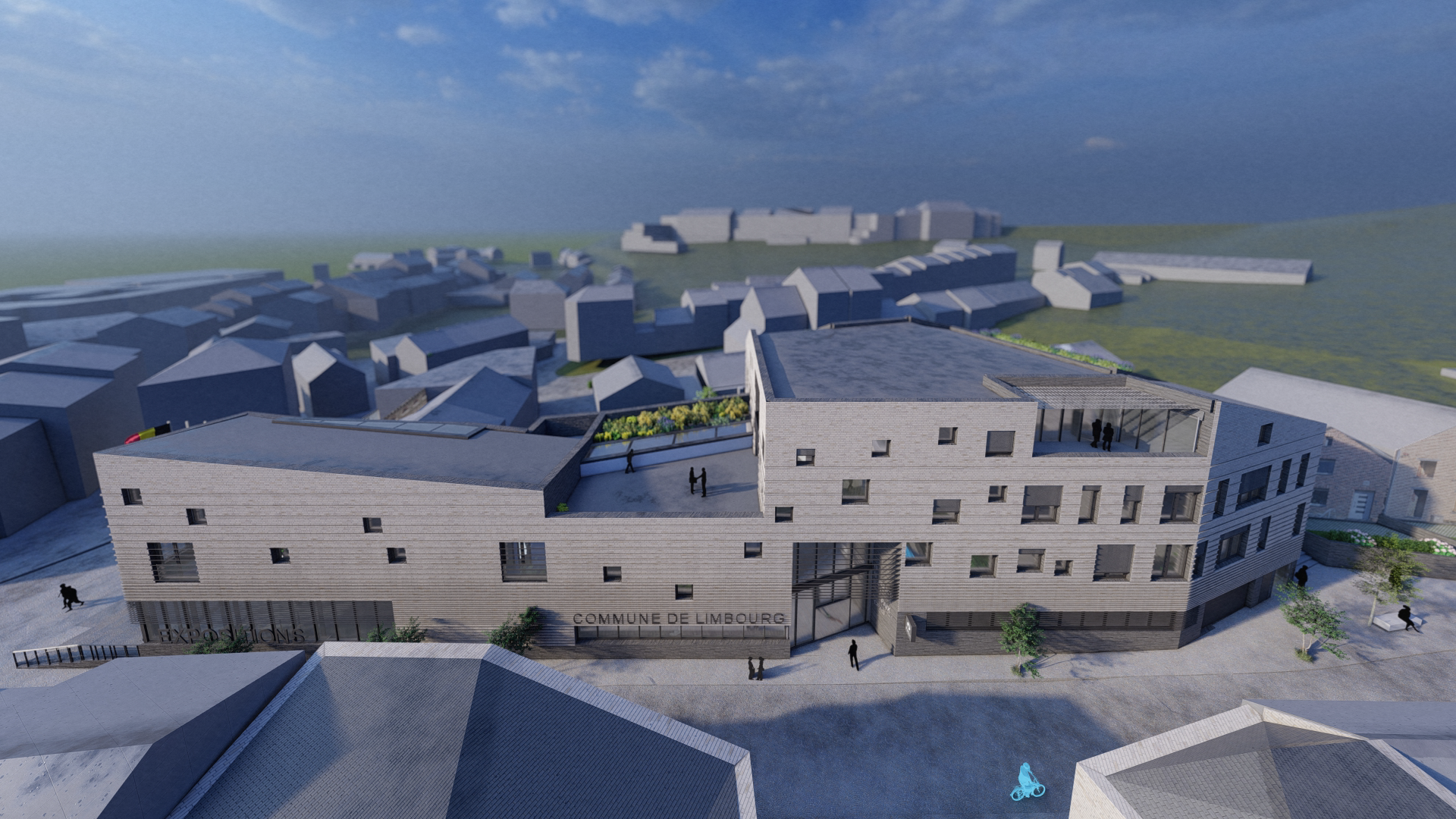 The project for the construction of the Limbourg Administrative Hub in the urban center aims to centralize several administrative entities into a single new building. Currently, the Public Centre for Social Action, the police, the justice of the peace, the Office of Birth and Childhood, the municipal administration, and the library are scattered across the city in outdated buildings that are poorly adapted, with low energy performance and heavy reliance on fossil fuels.