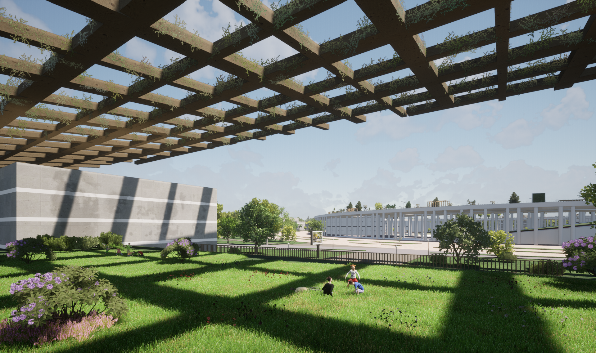 Covering such a vast area, the project strives to balance landscape and urbanized space, creating a comfortable environment. Some buildings are integrated into slopes, ensuring a seamless transition between zones.