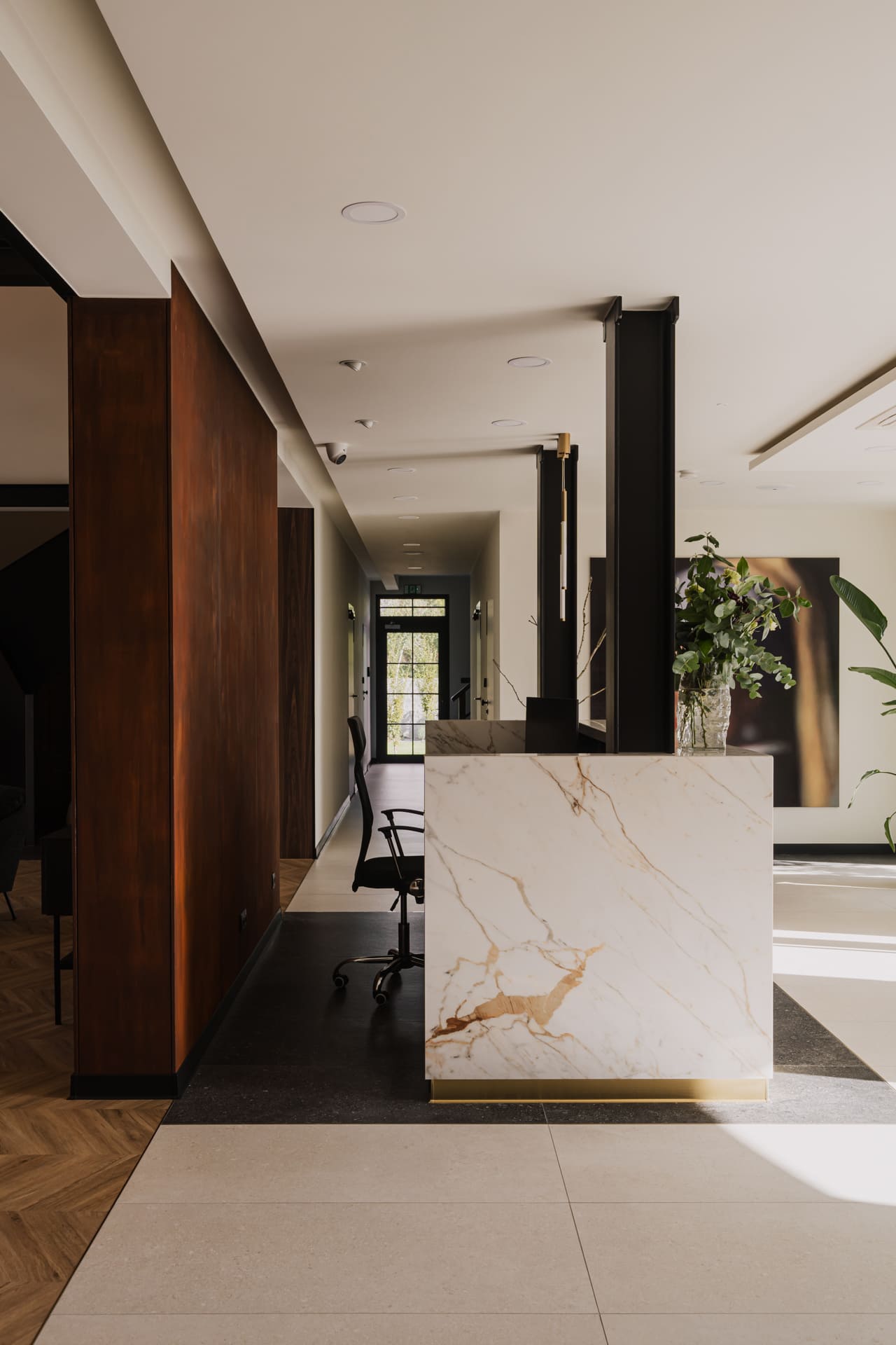 This aesthetic medicine clinic is housed in a 1950s building, once the administrative center of the State Machine Center in Gostyń. The project involved a comprehensive renovation, preserving the building's historical essence while integrating modern design. The design balances heritage and innovation, creating a contemporary, functional environment, while being adapted to utilize local resources, ensuring job opportunities and showcasing the power of collective action for a shared goal.