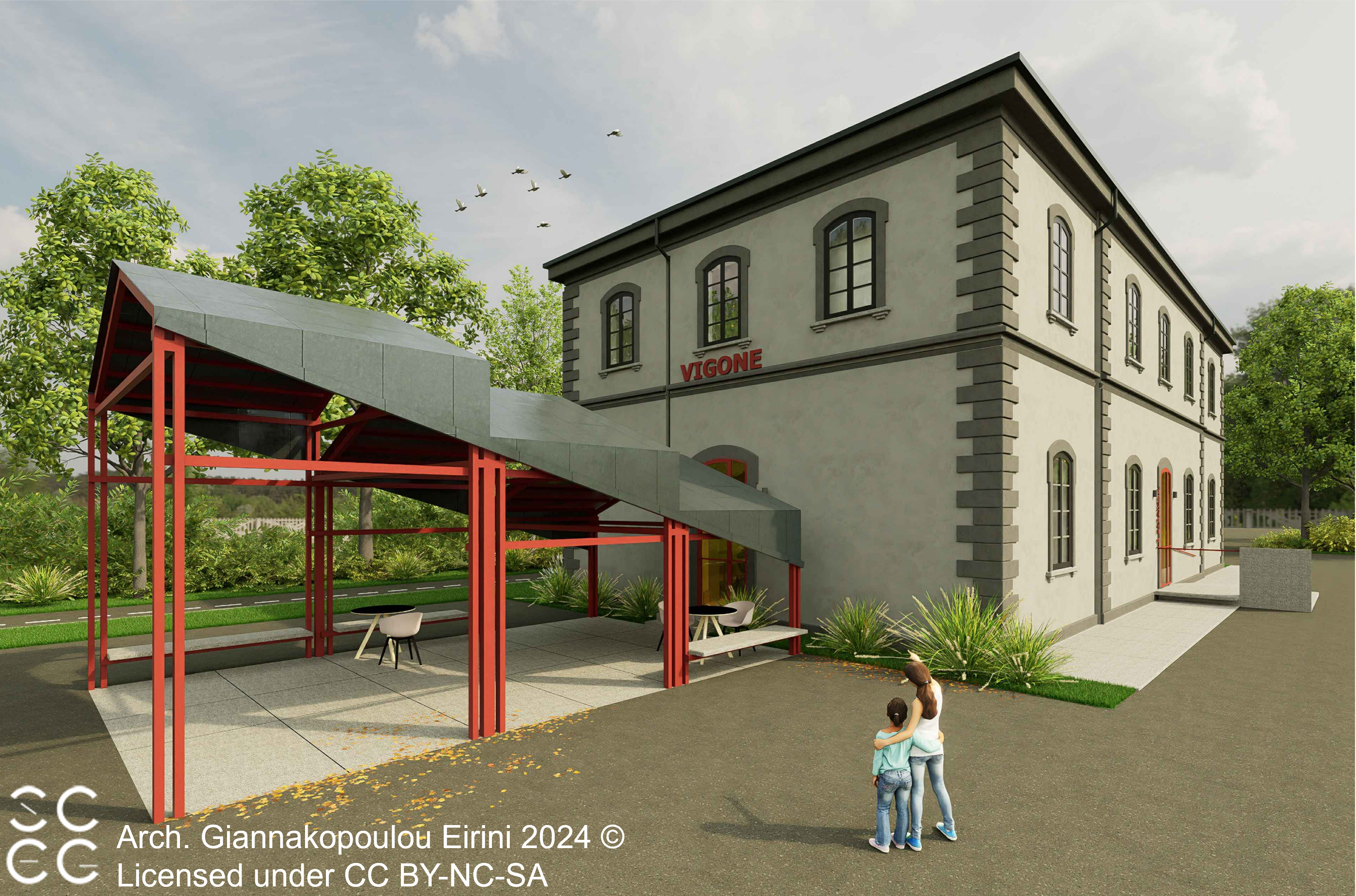 The project aims to renovate the city's railway station, currently in a state of decay and abandonment, returning it to the citizenship, especially the young citizens. The station is located along the 14 km cycle path that connects the neighboring small municipalities to the Airasca railway station (still working), within the city park enriched by artistic works, the famous "Artist’s Benches", the gatehouse decorated by the Uruguayan artist Coco Cano, and at short distance from several springs in the Vigone countryside. Preserving the cultural heritage of the structure, the interior spaces will be renovated so as to create: (i) a new headquarters for the City Library, with large and bright spaces for children and adolescents on the ground floor; (ii) a large conference/meeting room on the first floor for city associations, study rooms and co-working spaces for young citizens and digital nomads with independent access. The intervention will be carried out in full climate neutrality. To preserve the surrounding artistic context, the building will feature a work by the Turin artist Hilario Isola.