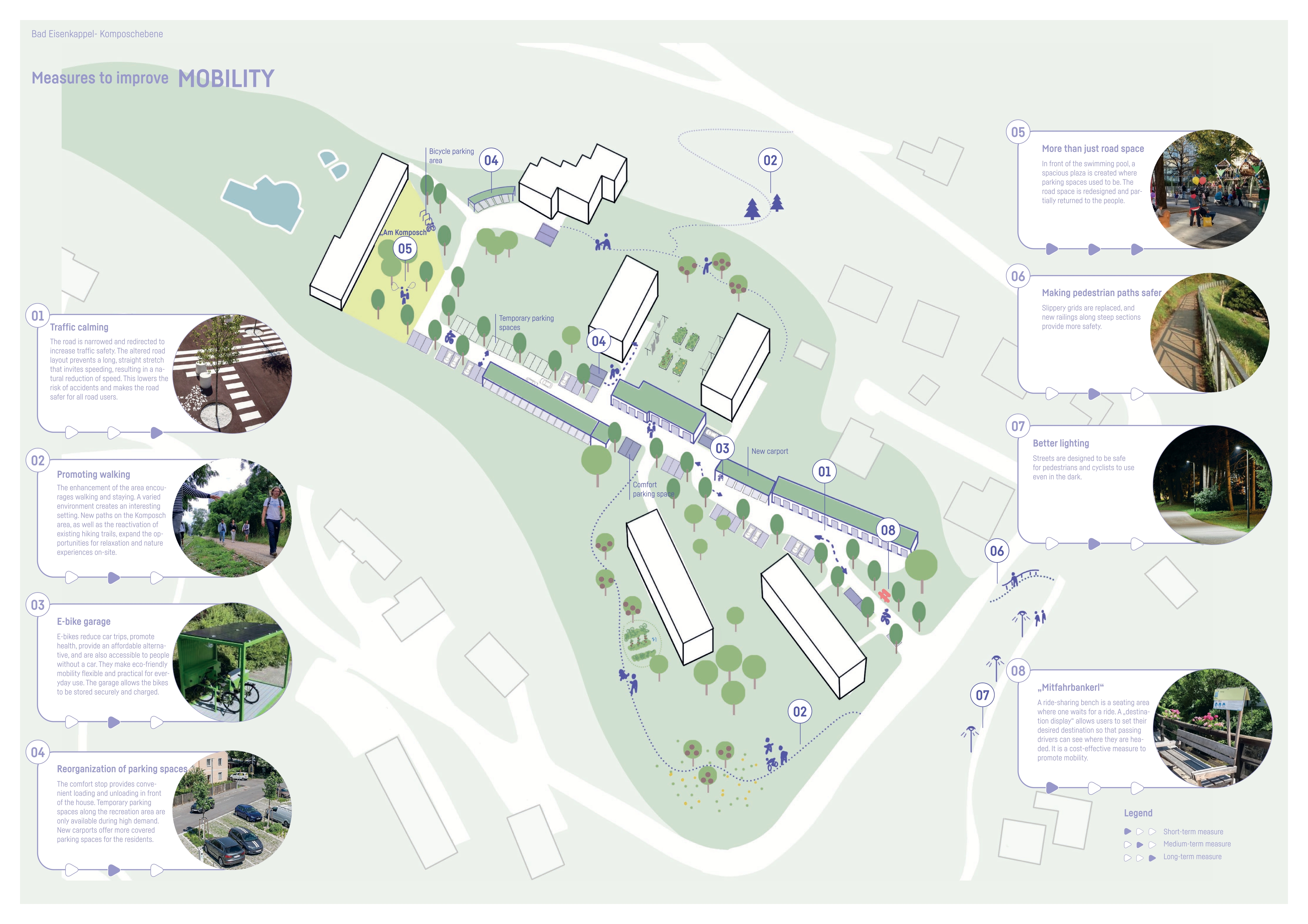 Integrated Planning: Combining expertise from various disciplines to create a holistic and sustainable renovation strategy and attractive offers for mobility and open space (private, semi-public and public). The involvement of the municipality in the planning process adds to practicable solutions that are adapted to local needs.