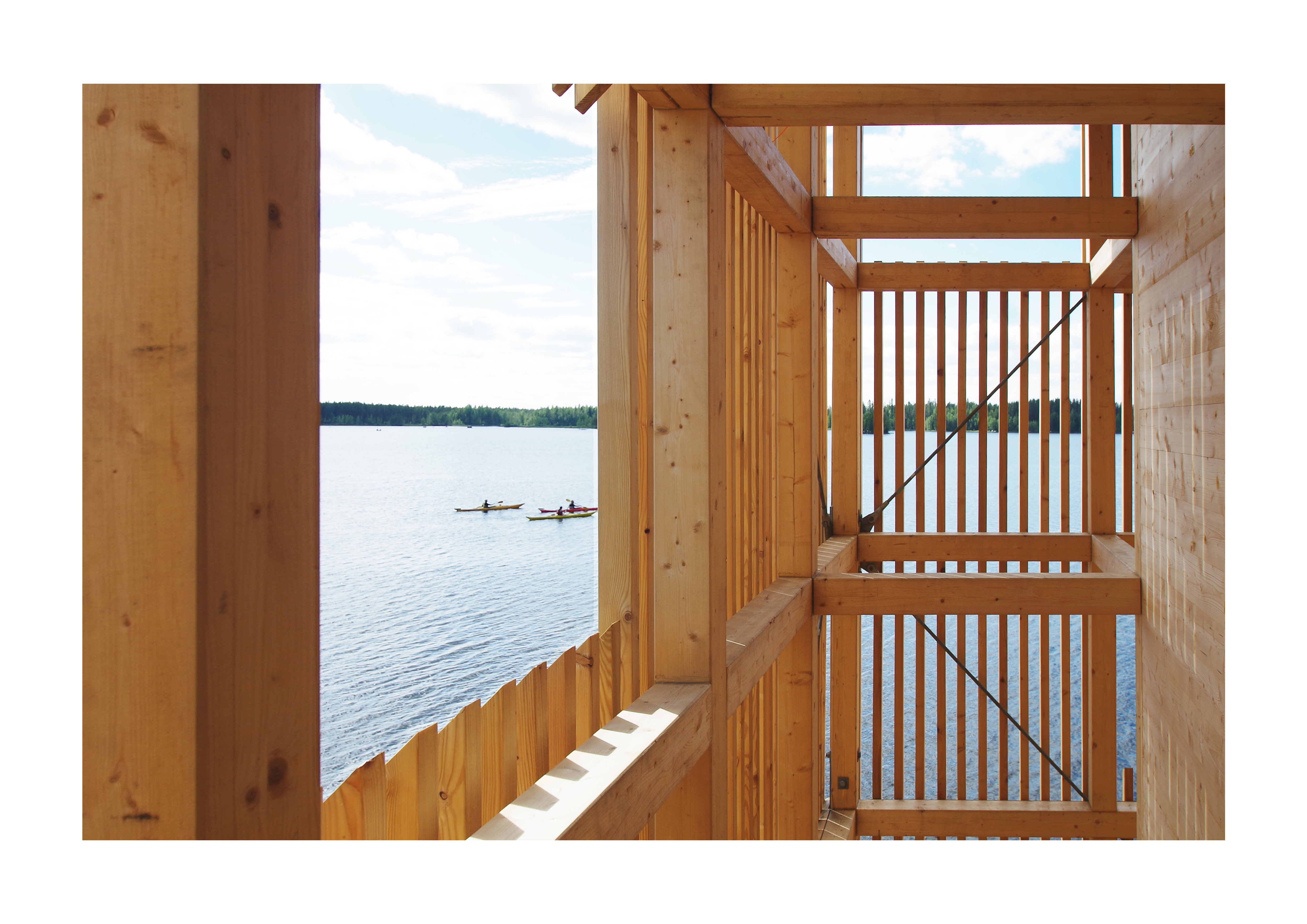 The Periscope Tower was originally opened at the time of the Finnish Housing Fair, an annual event which was held in Seinäjoki in 2016. The fair marked the beginning of the development of the new residential area next to the man-made lake, Kyrkösjärvi. With its distinct wooden architecture, the sculptural observation tower forms an identifying landmark for the newly built area. It serves as a meeting point for the new community of residents in the rapidly growing city.