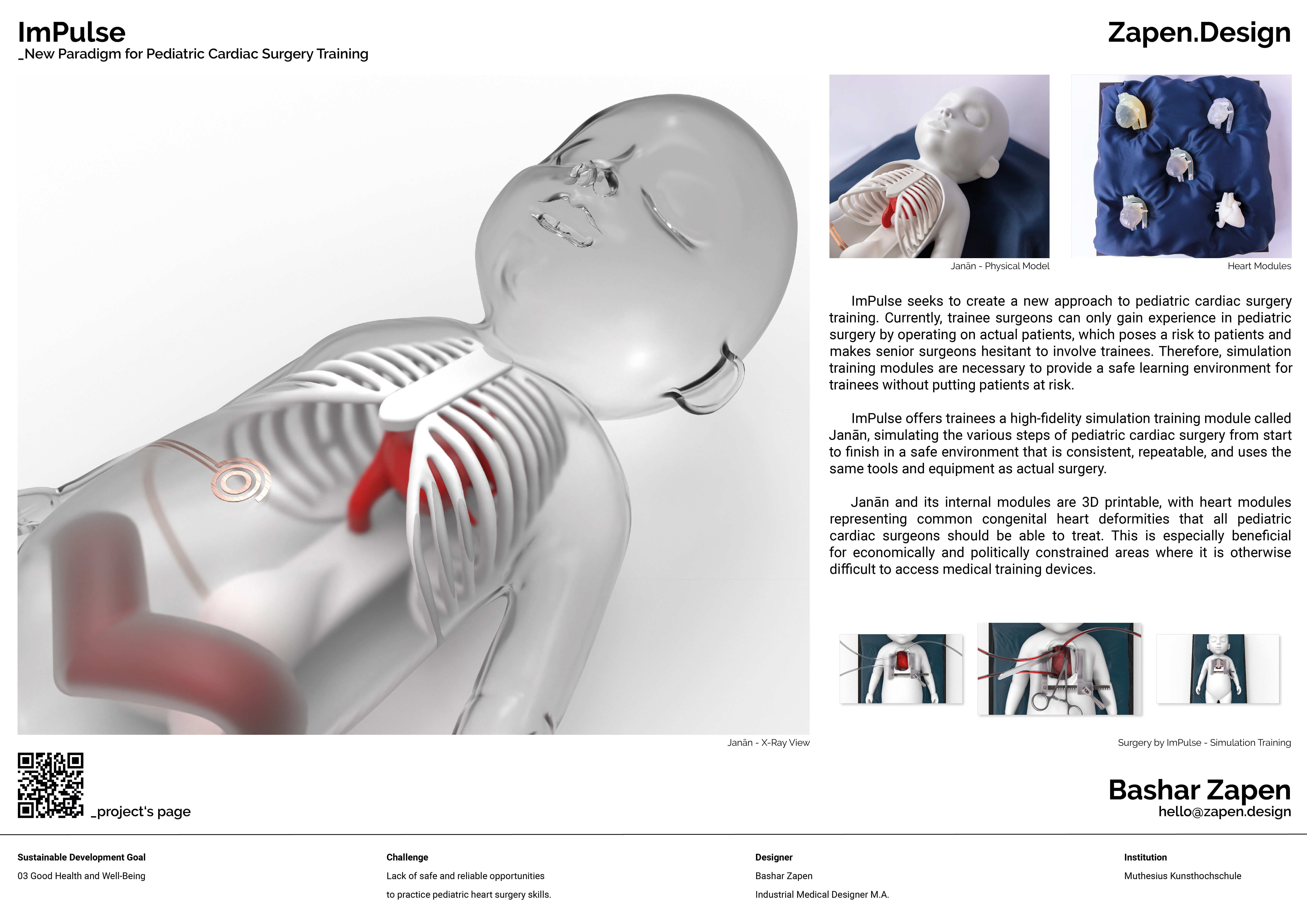By integrating medical research, user-driven design, advanced manufacturing, and sustainability principles, ImPulse delivers a cost-effective, ethical, and high-impact solution for pediatric cardiac surgery training worldwide.