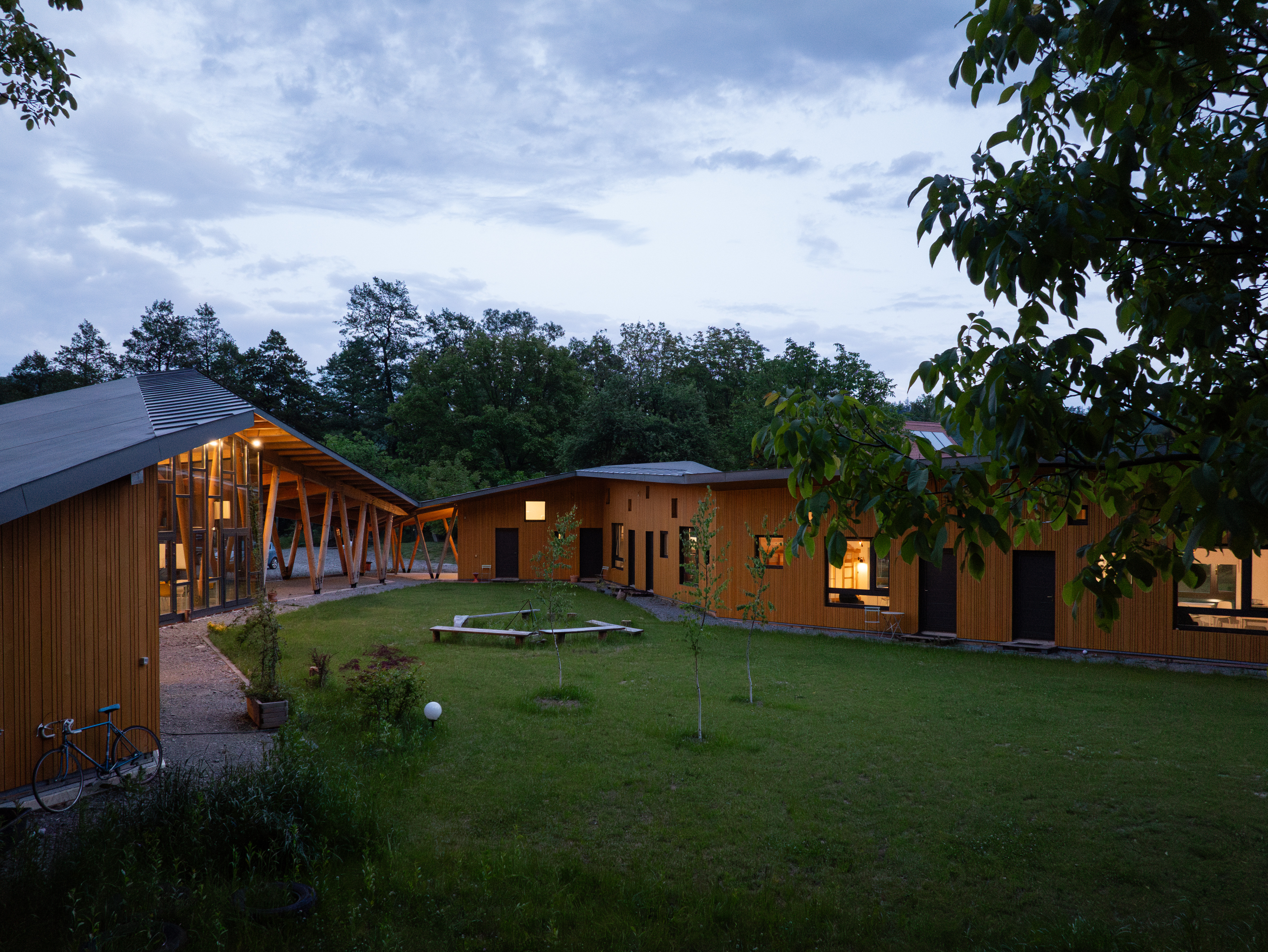 In early 2018, Stuttgart-based Scottish architect Alex Whitton was contracted to design the camp building. He developed a practical, beautiful, and environmentally conscious compact, multi-modular concept that uses architecture as a catalyst for exploring the themes incorporated into the program. He finalized the plans at the end of 2018, and construction began in 2020, after obtaining the necessary permits from local authorities. Since tranzit.ro/Cluj was not abandoned by Erste Stiftung and continued to receive funding, the four initiators registered the Hypha_etc Association in May 2023, ensuring the long-term management and operation of the site’s programs.