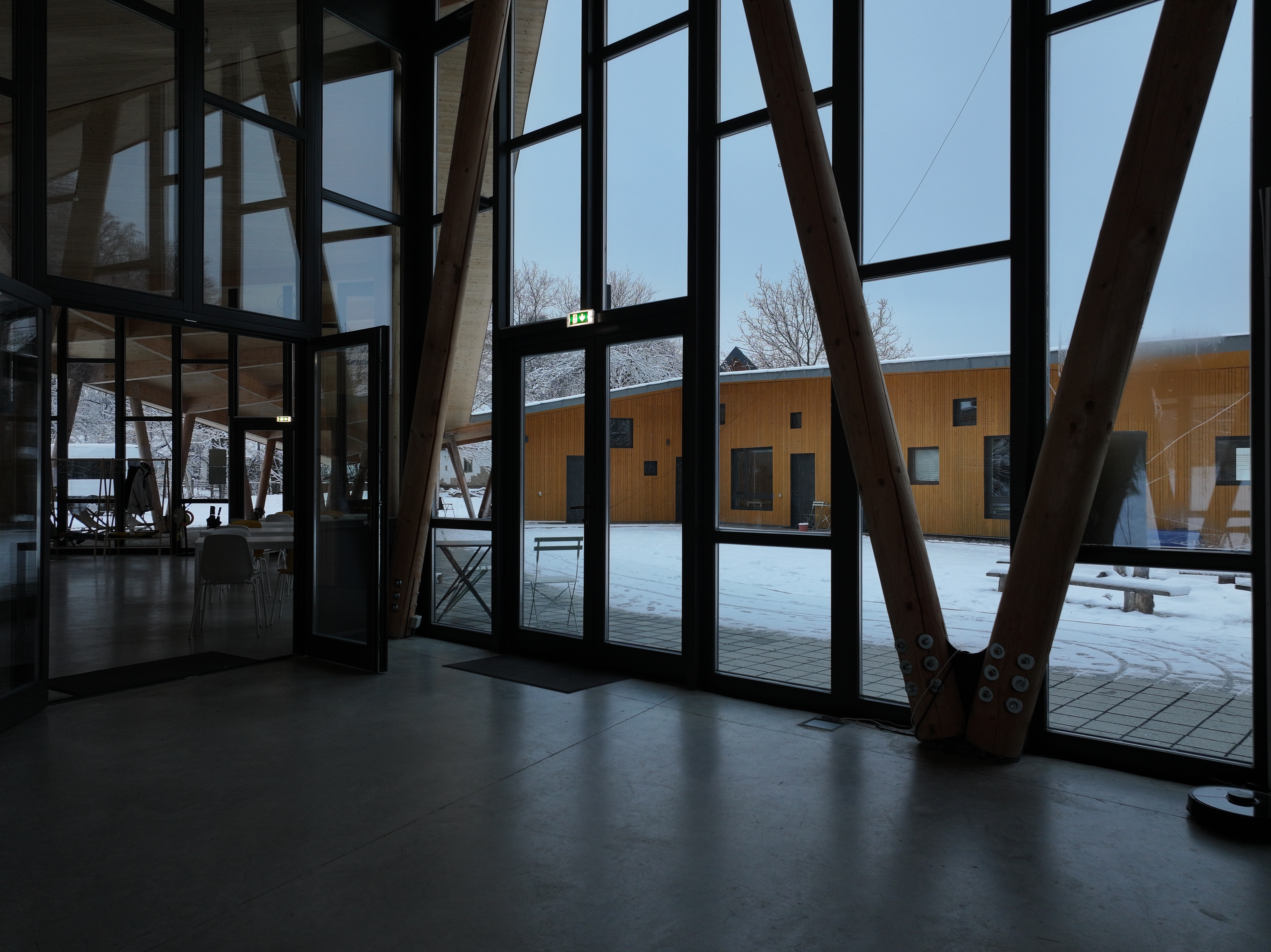 The hypha_etc campsite therefore enhances the connections between architecture, nature, and education. The camp’s buildings use local materials and simple forms that blend harmoniously into the natural landscape. Floor-to-ceiling windows provide natural light and views of the surroundings, creating a strong connection between indoor and outdoor spaces. A planned green roof will help insulate the building, support biodiversity, and serve as an additional gathering space. The campsite’s layout encourages interaction and movement, allowing people to engage with both the environment and each other in new ways.