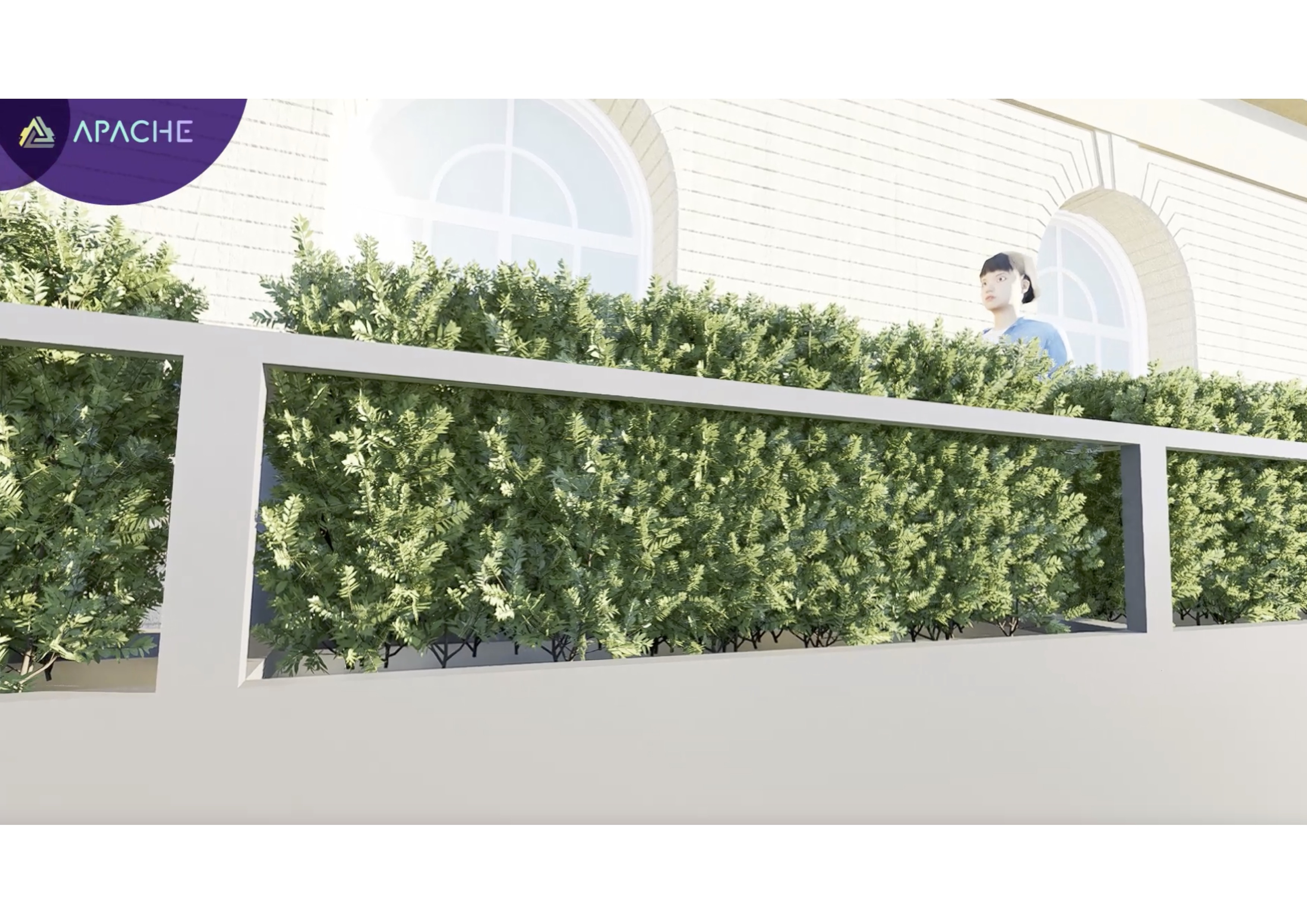 terms of watering, (iv) The solution should be scalable and modular to enhance sustainability, The APACHE vegetative barrier has been experimentally shown to reduce pedestrian exposure to harmful pollutants like VOCs by 55%. This is by means of a segmented vegetation barrier with appropriate foliage and dimensions that