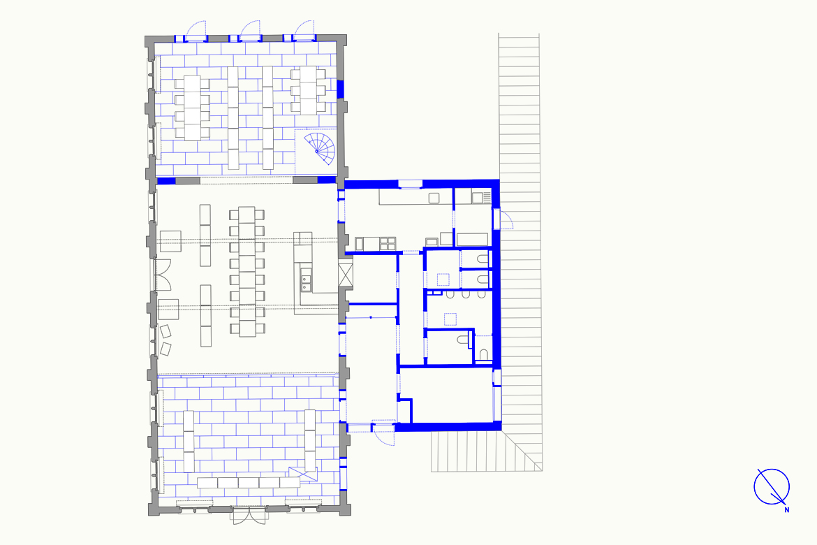 A key objective was to respect and enhance the site’s historical aesthetics while allowing for contemporary interventions. The convent buildings were carefully restored, preserving original materials and architectural integrity. Selective removals and additions introduced new functions without disrupting the site’s historic character, creating a seamless blend of old and new.