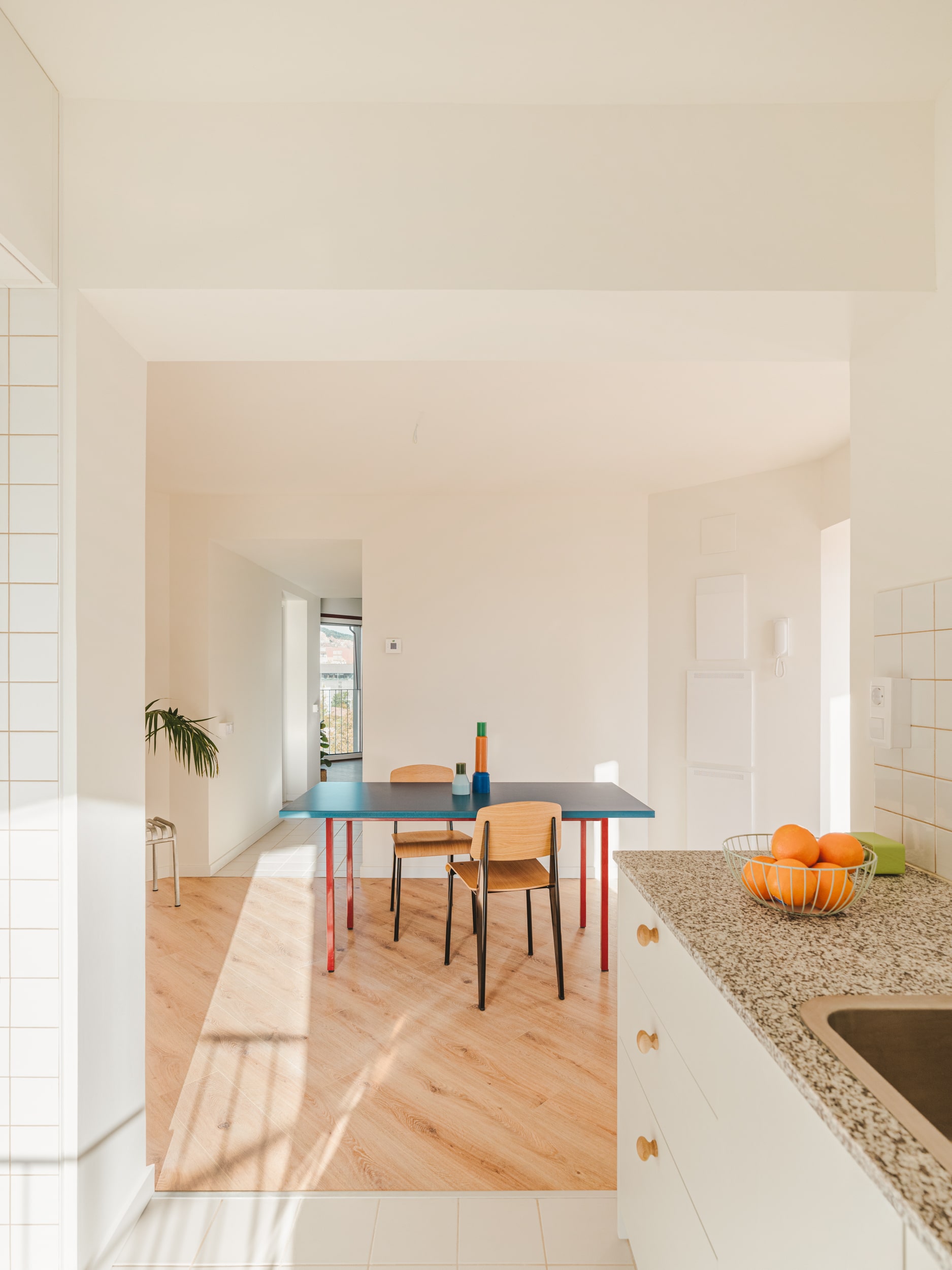 In aesthetic terms, the project stands out for its careful use of color and texture, highlighting the thresholds between the bustling city and the intimate home. This approach adds warmth and vibrancy, ensuring permeability between public and private spaces. The facade reflects the interior urban biodiversity, symbolizing the dynamic relationships between these realms.