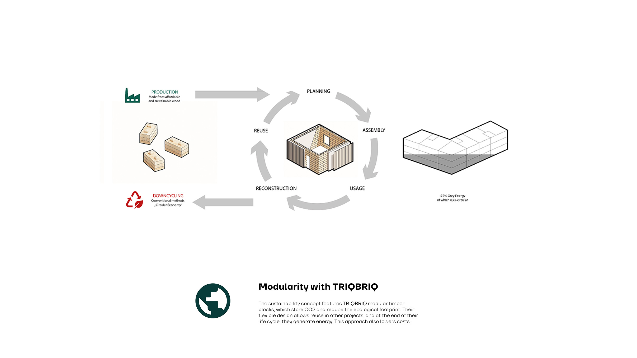 The project creates value across multiple sectors. Planners and developers gain a replicable model for circular, low-carbon buildings. Construction companies benefit from faster, more efficient processes using lean methods. Future residents will have affordable, adaptable housing that evolves with their needs, while cities and policymakers gain insights into how circular construction can support climate-friendly urban development. The use of sustainably sourced timber not only reduces embodied carbon but also acts as a carbon sink, offsetting emissions and making the building CO₂ negative.