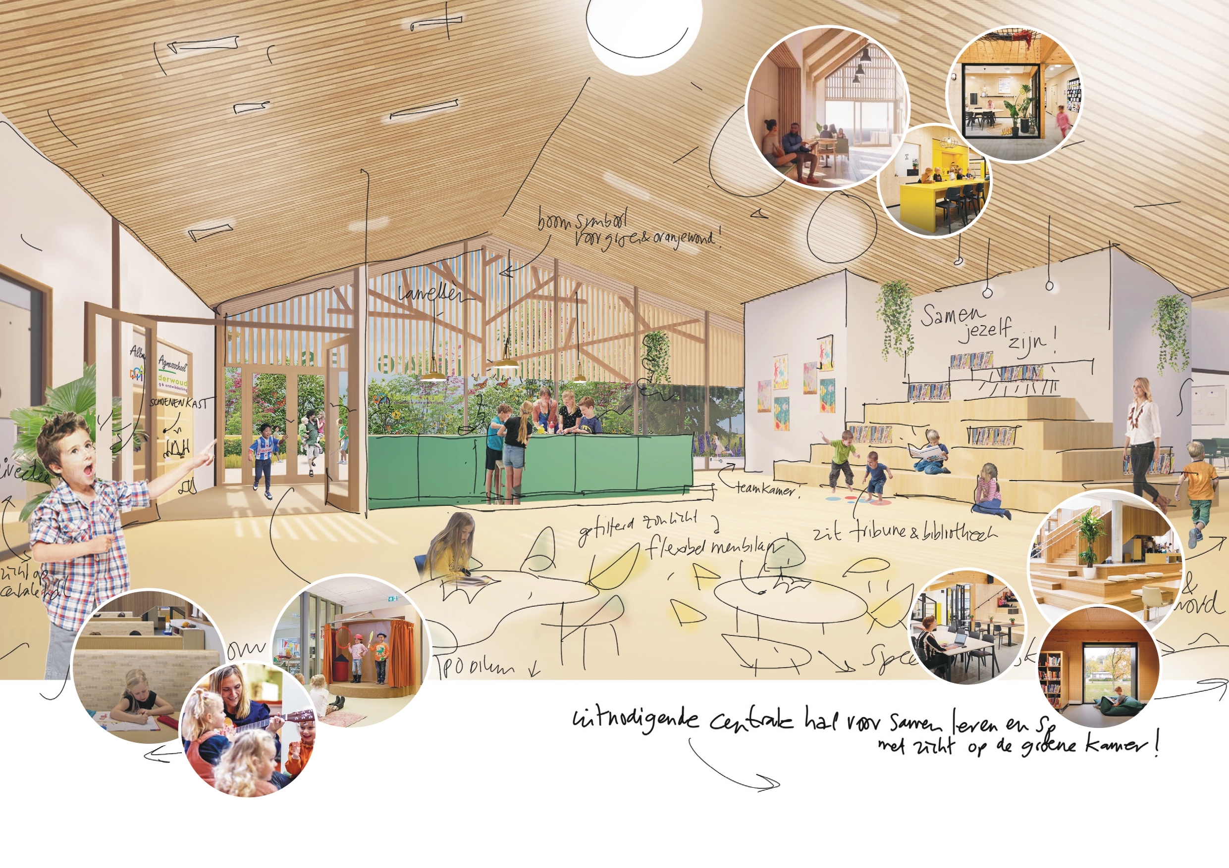 The initiative aims to build a new, sustainable, and future-proof educational facility for the Albertine Agnesschool in Oranjewoud. The new building will serve as a so-called integrative child center, providing a nurturing and inspiring environment for children aged 0-13 years. By focusing on a strong continuous educational pathway and integral cooperation around children and parents, equal development opportunities can be provided to children. The overarching goal is to create a values-driven, energy-neutral and inclusive learning space that aligns with modern educational needs while embracing environmental and social sustainability.