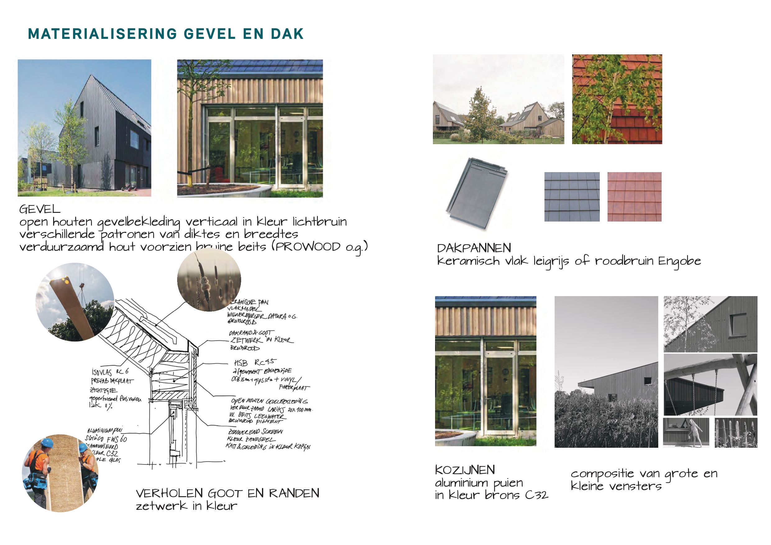 The school fits in its surroudings. Not only do the materials and their finishings match with the natural environment, the design is inspired by typical Frisian barn roofs (stolpkappen) with gable ends. Farms of this type can be found in many places around Oranjewoud.