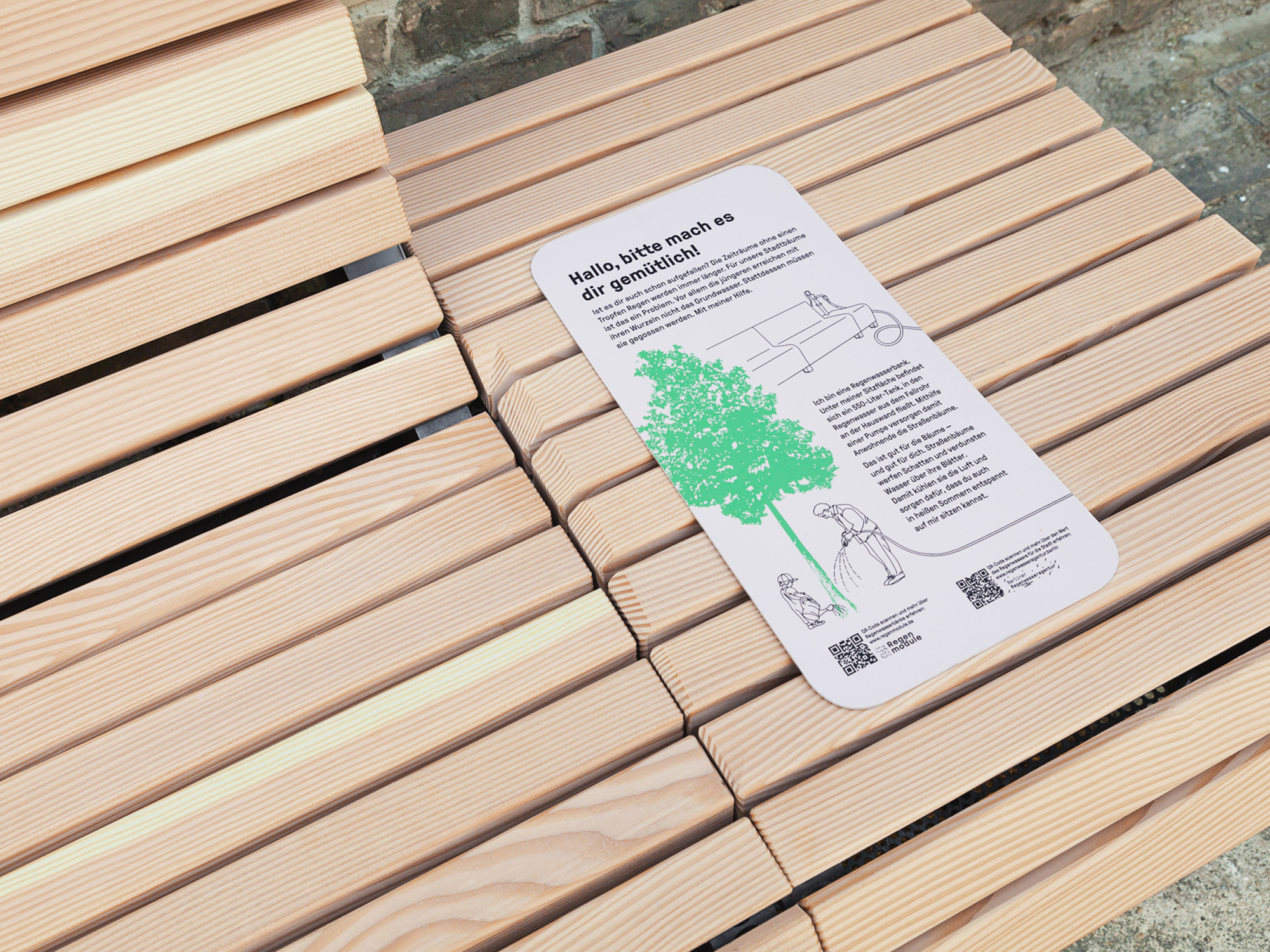 Unlike conventional urban furniture, which often prioritizes aesthetics over ecological function, our rainwater bench actively contributes to urban resilience by collecting and storing rainwater for tree irrigation. This ensures that street trees receive a better of care, as the responsible offices are largely overstretched with capacity.