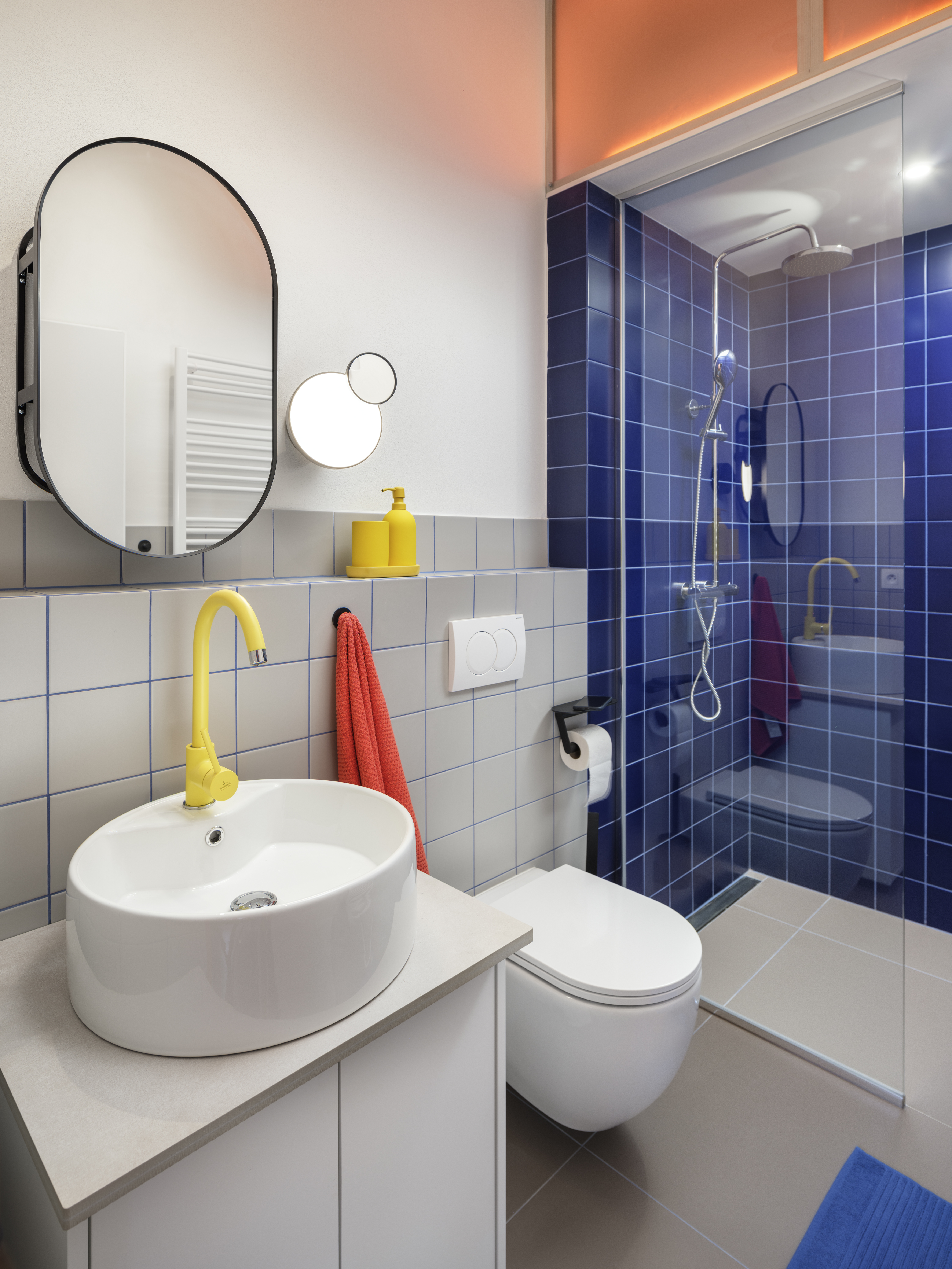The project enhances the quality of experience by prioritizing joy and engagement in daily living. The color contrasts, clever furniture integrations, and dynamic compositions invite curiosity and encourage a sense of belonging. Greenery further softens the interior, bringing a natural freshness to the space.