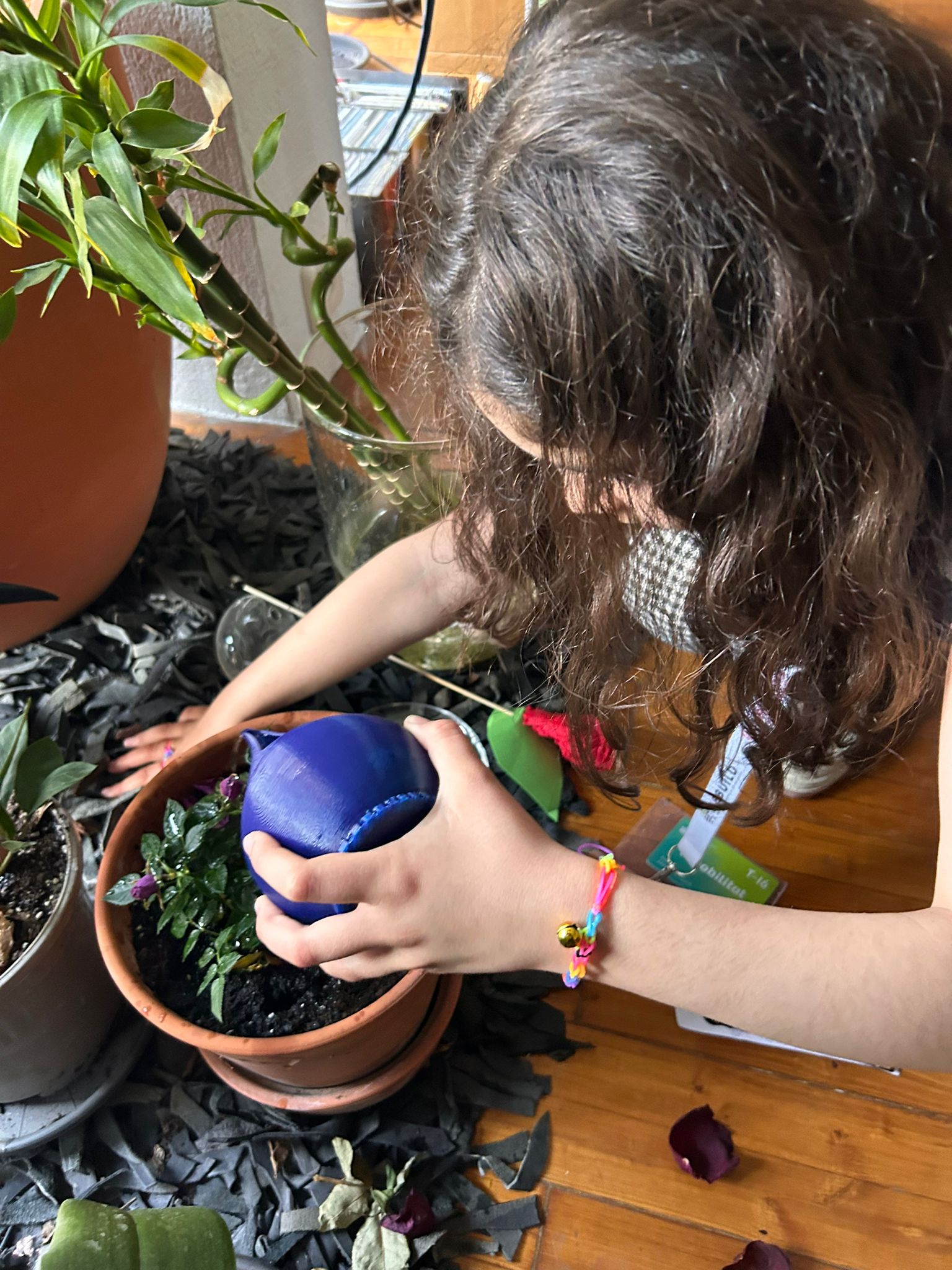 • Workshops on innovation: Workshops focused on designing a watering can that could be 3D printed with PLA bioplastic and used to collect household waste water for watering plants.