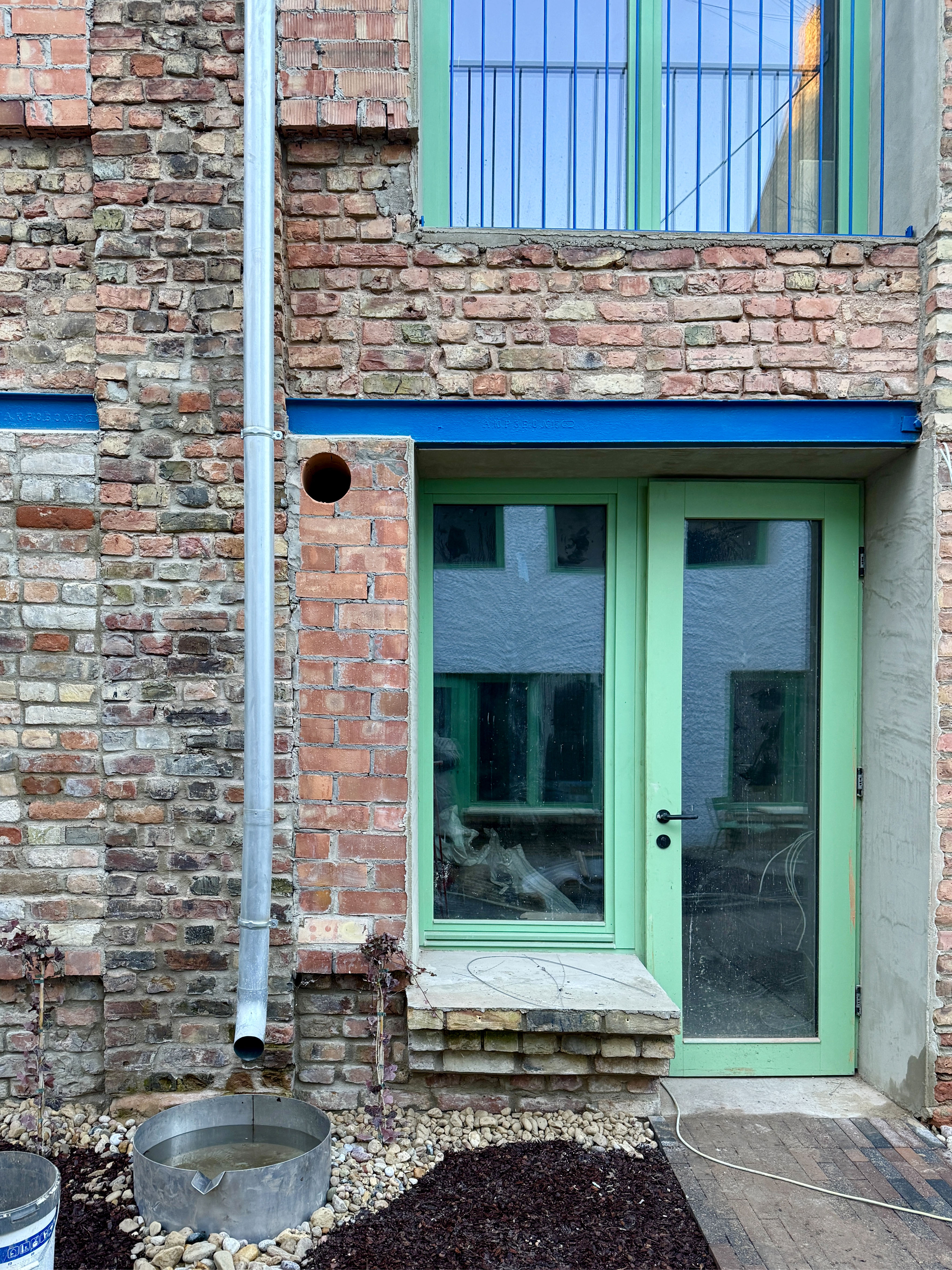 The approach of adaptive reuse also means that there is a circulation of materials on site - both leftovers of new materials are minimised (for example, house numbering is produced from the leftover steel profiles), and the existing materials are often displaced from one spot to another. For us, exposing this approach is crucial to ensuring the future user is aware of the history of the site as well as the value of materials used. Hence, this approach inevitably offers a new kind of aesthetics.