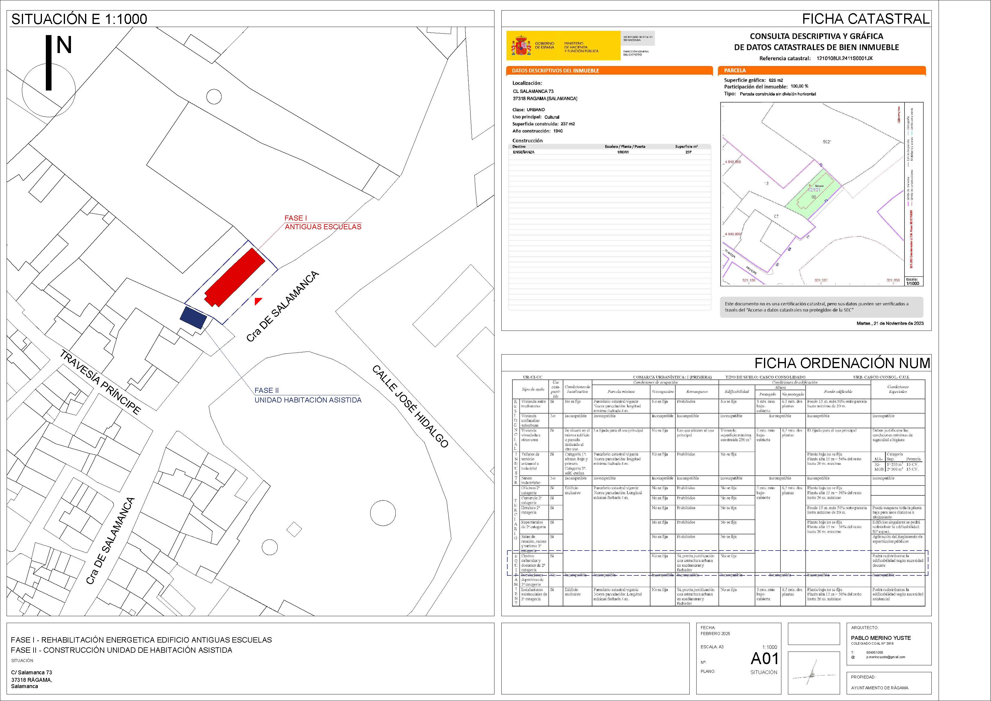 The project transforms the building of the old schools, until now abandoned and deteriorating, into a facility to provide a new service to the elderly population, who currently must leave the territory in which they have lived all their lives to enter centers in other locations, as they cannot be attended to. With the new center, older people who can take care of themselves will be able to prolong their lives in their own homes, with their lifelong neighbors, by providing them with the necessary services and help in this center. In a second phase, the aim is to promote the rehabilitation and expansion of the housing on the adjacent plot to enable a sheltered house so that those who cannot sleep alone can cohabit there, prolonging their life in society much longer.