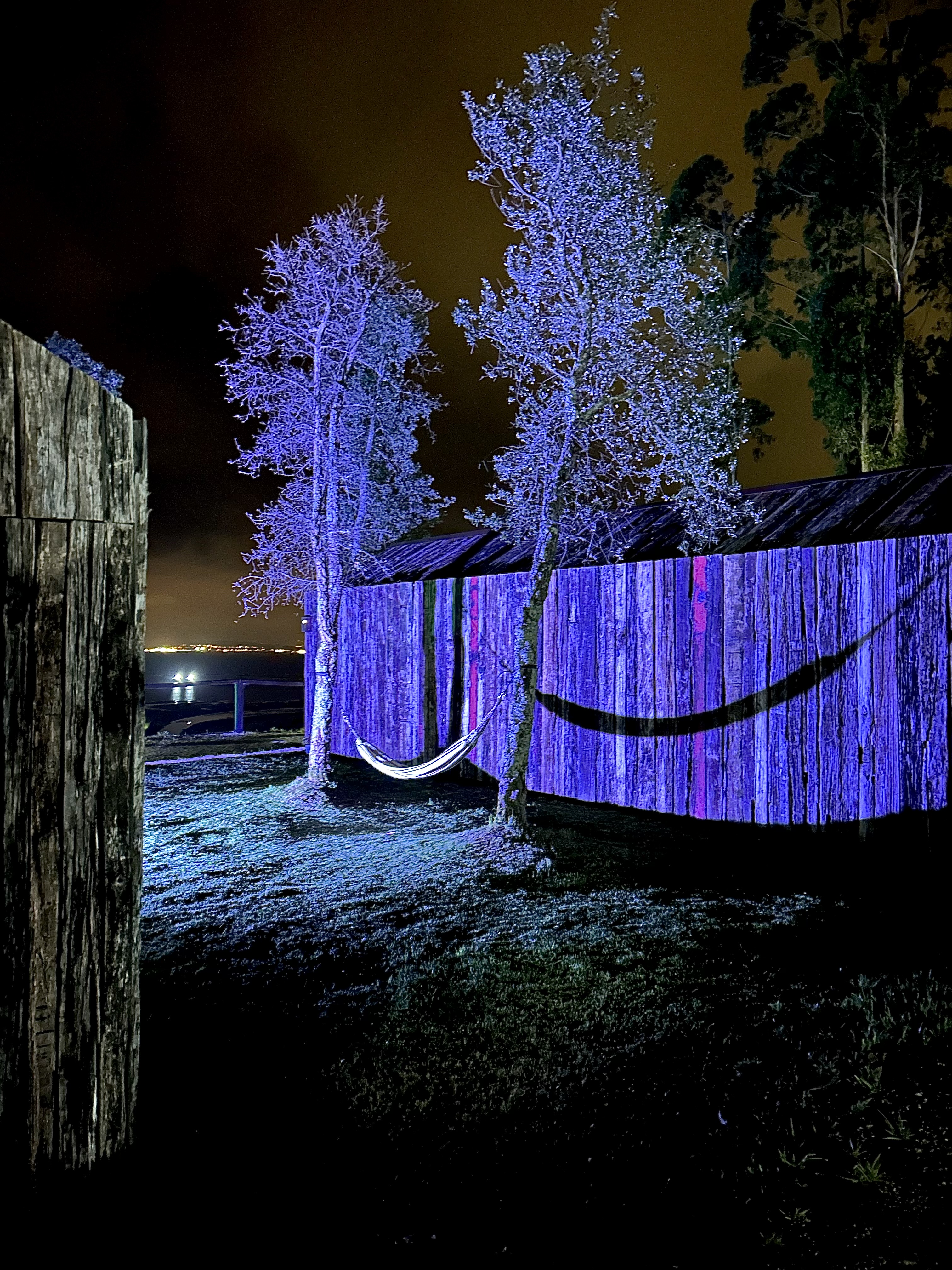 Design and construction made from wood that grows for 25 years in the ocean on platforms dedicated to mussel farming. It integrates spectacularly into the landscape and enhances the customer experience in the environment in which it is developed