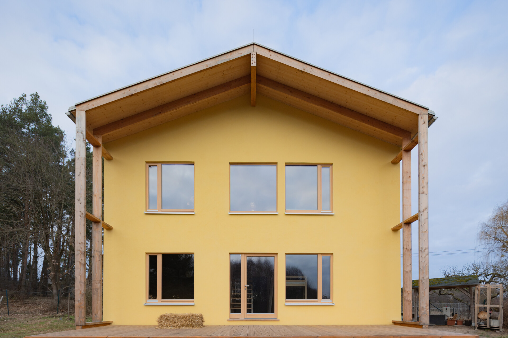 Natural Materials: The use of natural materials that function without chemical fire protection and a diffusion-open building envelope, avoiding plastic films in the walls.