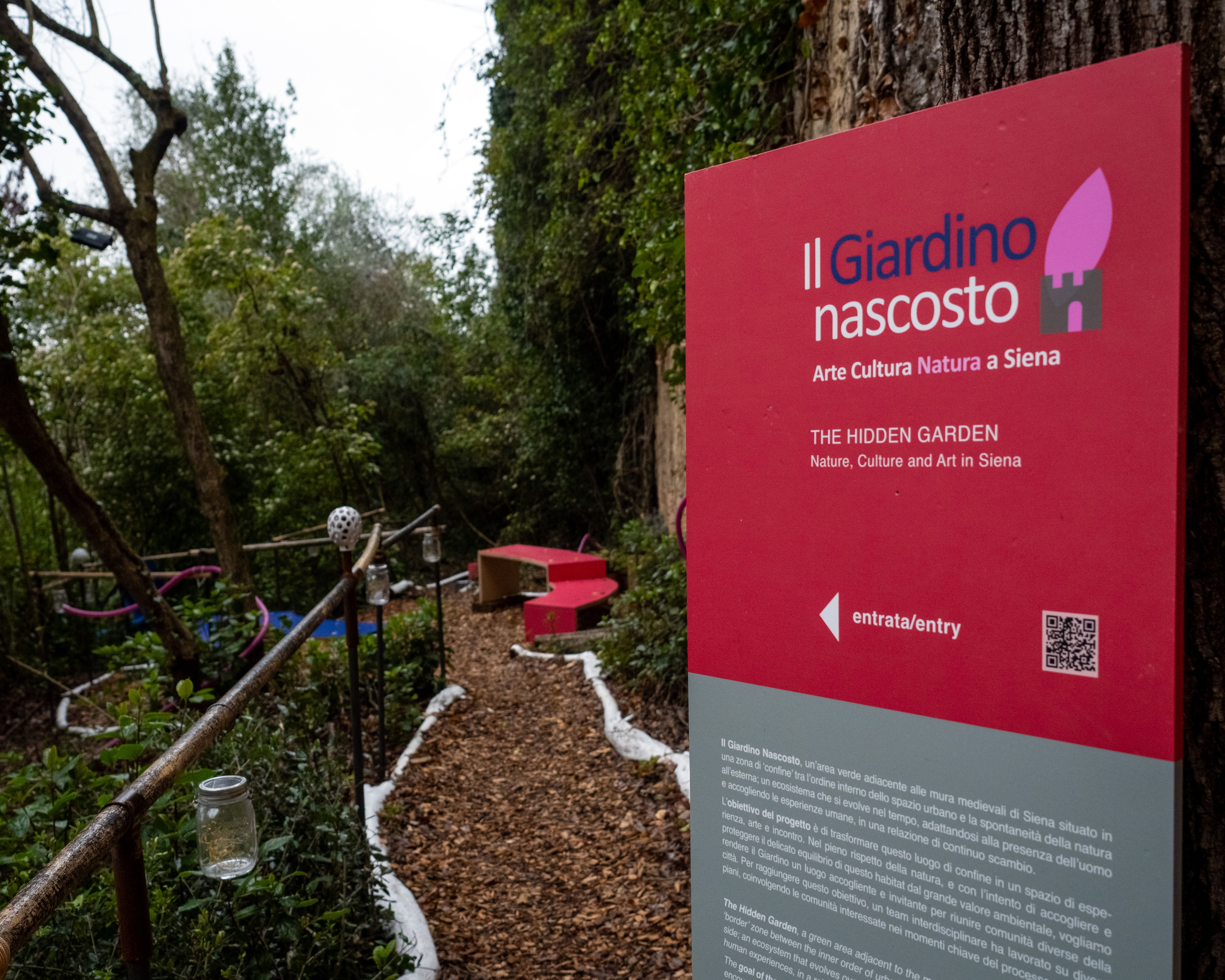 The Hidden Garden, a green area adjacent to the medieval walls of Siena located in a 'border' zone between the inner order of urban space and the spontaneity of nature outside; an ecosystem that evolves over time, adapting to human presence and welcoming human experiences, in a relationship of continuous exchange.
