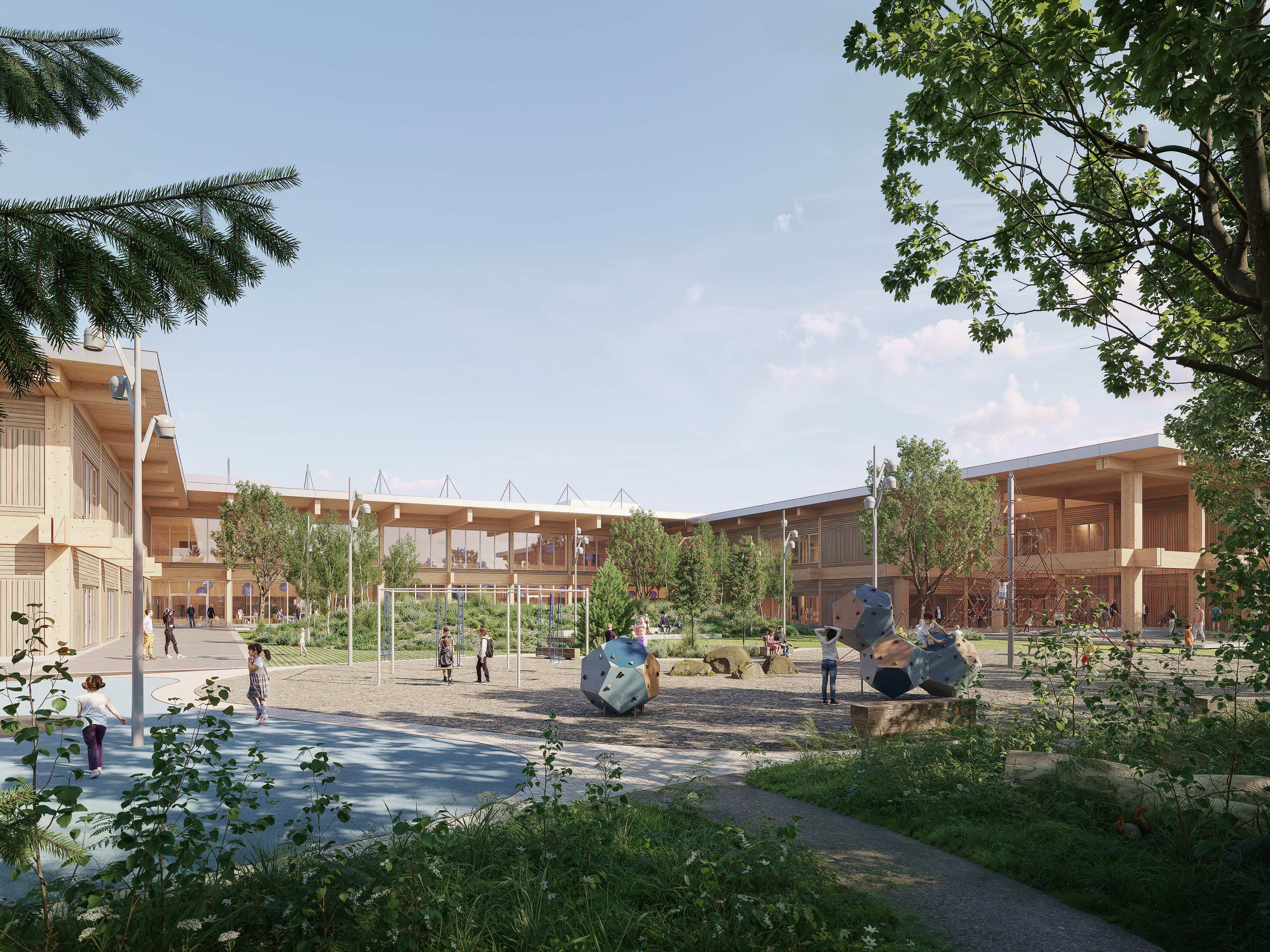 The winner of the architectural competition came up with a solution that met both the needs of the municipality and the wishes of the community. The final result will be an education and community centre, including a kindergarten, school, sports facilities and public space for all.