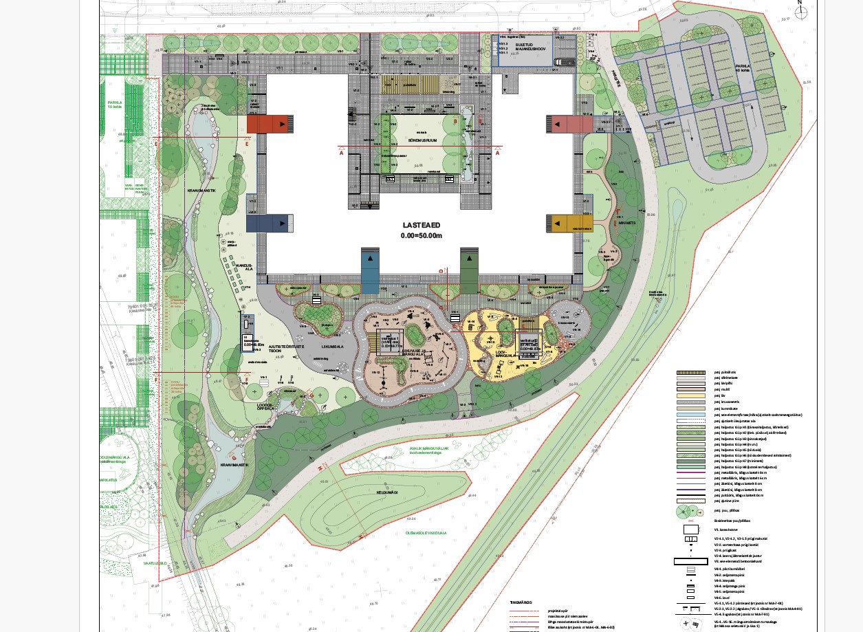 The new infrastructure to be built will take into account the objectives of the Tartu Rural Municipality Energy and Climate Plan. The buildings to be constructed will be designed for at least energy efficiency class A. All the solutions for the new infrastructure will take into account the extreme situations arising from climate change - environmentally friendly stormwater solutions will be used. The original site on which the new infrastructure will be built will be dominated by species-limited grass vegetation and the invasive Canada goldenrod (Solidago canadensis). The new green areas will be planted with a variety of native plants to create an environment conducive to biodiversity enhancement. The landscaping has also taken into account the mitigation of potential heat islands. Environmentally sound and environmentally friendly solutions have been favoured in the design and construction of the solutions.