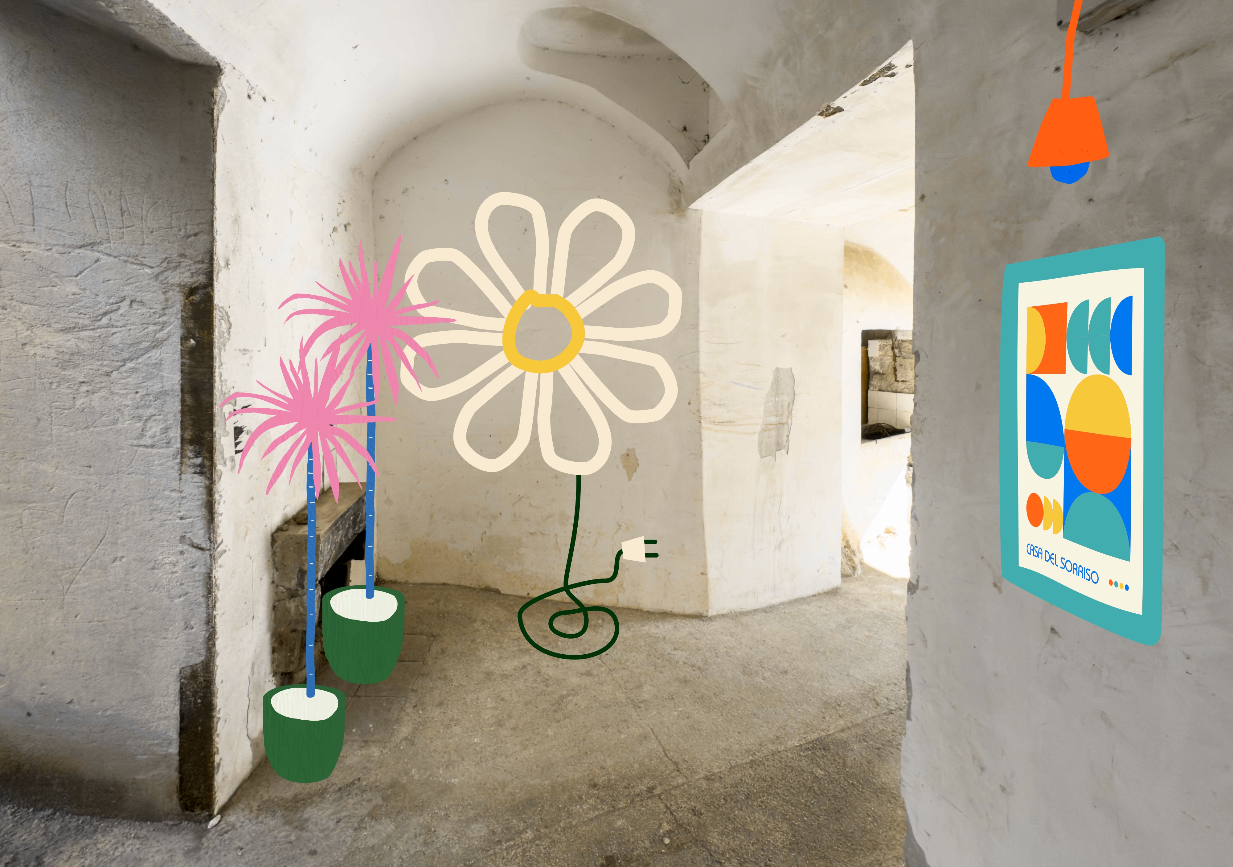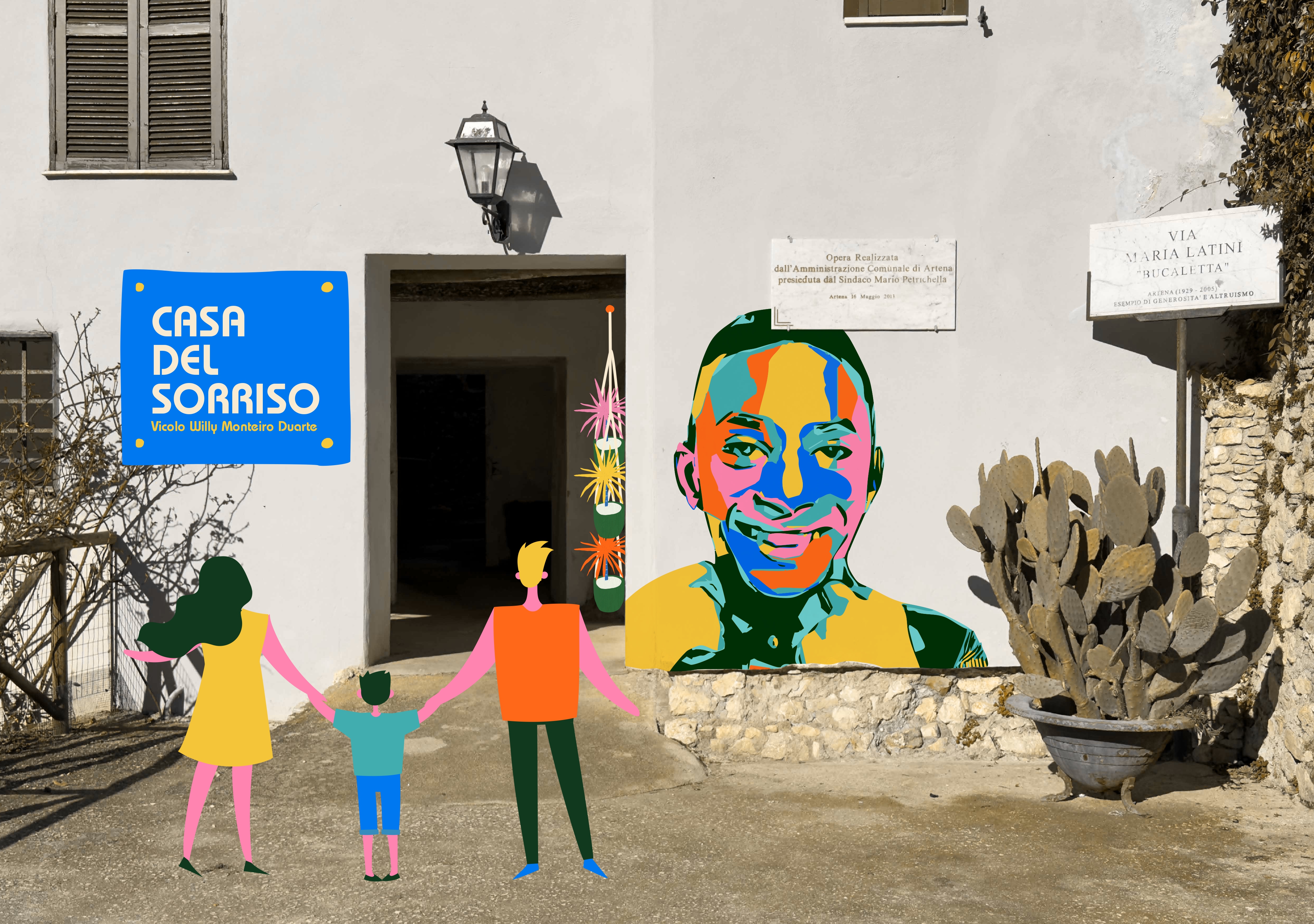 "House of Smiles" is more than a home: it's a gateway. An abandoned space in Artena is reborn as an open path, transforming into a vibrant entrance to the city, where inclusion and community take center stage. Dedicated to Willy Monteiro Duarte, it symbolizes openness, memory, and resilience. Through art, storytelling, and participation, it welcomes all, inviting everyone to be part of a new, shared urban space where the city opens up and smiles again.