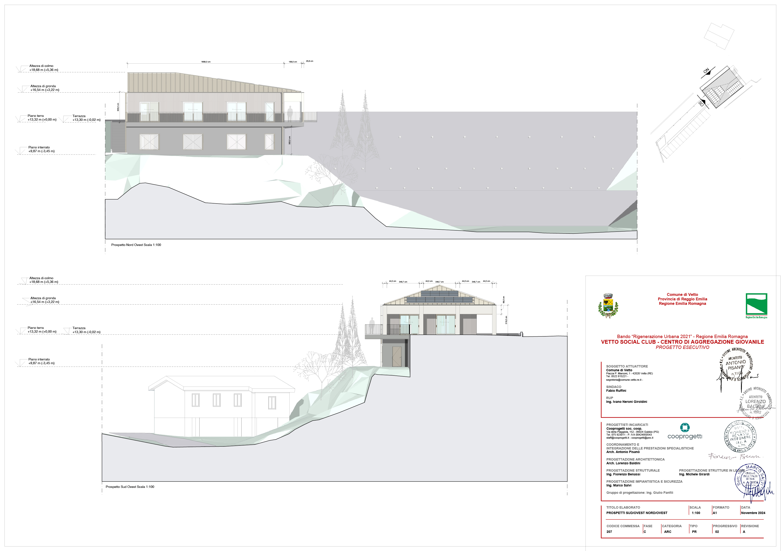 Four years on from the participatory planning project Vetto-Re, the co-created, community-led, vision still inspire public investment and urban regeneration projects. During Vetto-Re (2021) local community mapped the needs and potentials of the local area, highlighting key objectives for young people, sustainable tourism and sports & public events infrastructure. Following on from Vetto-Re Roadmap, the Vetto Social Club was defined and submitted for Regional Funding. It was awarded first price in Emilia Romagna. Still leveraging the vision of Vetto-Re, the Municipality has also submitted a funding application for a community-led and run hostel - Albergo Centrale (2025) and secured funding for the new public sports hall, which will double as open-air theatre during the summer months. Community inclusion is not simply a measure of good public policy implementation in remote mountain areas but rather it constitutes an essential part of any public project feasibility. Only when the community acts together the fragility of low density and complex logistics can be overcome. The Vetto Social Club is inclusive in its vision, it is inclusive of the requirements for fellow village businesses in its programme providing space for self-catered co-working during the working hours of other village bars and cafes only to turn into a live music pub when the other businesses are shut for the day. The live music pub will be community-run by Il Pontaccio, the local Community Cooperative body - or other similar groups. The building is inclusive and accessible both internally on its two storeys and externally through level thresholds and ample landscapes areas with multiple terraces overlooking the valley. Tthe design features natural surfaces and treatments to create a compelling experience also for touch and smell. Vetto Social Club will host cooking classes which will bring close people of various ethnic backgrounds, the new hope for mountain area demographics in Italy.
