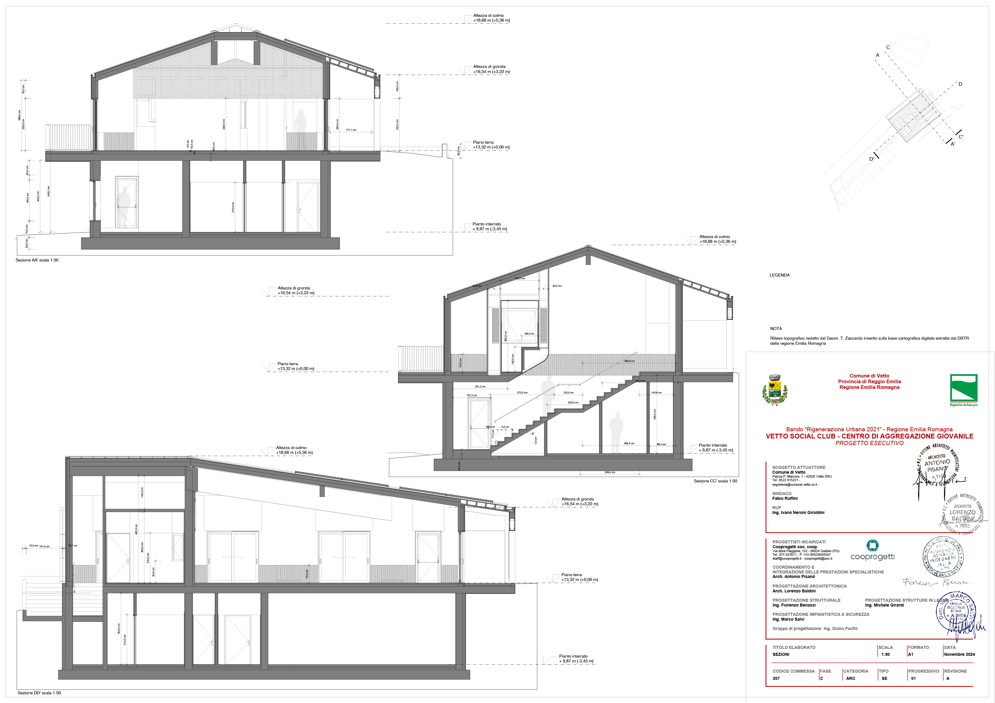 The Vetto Social Club drew from a vast network of specialists. The participatory planning event Vetto-re di Idee was facilitated by expert in Community Engagement and Urban Regeneration. The coordination with the overall regional development strategy SNAI / STAMI La Montagna del Latte involved local development specialists such as economists, planners, civil servants and politicians. The submission of the design, which resulted in the first place in the Bando Rigenerazione Urbana Emilia Romagna 2023, involved architects, landscape designers and cost managers. The preparation of technical design for public tender involved geological engineers, geologists, structural engineers, services engineers, timber construction specialists and architects. All along the municipality has been following the process and communicating with the local community through the work of specialist social studies professionals, psychologists and communication specialists. The pivotal coordination team has been the architects, some of whom have been involved in the process from its beginning. Architecture has proven to be the mos ideal discipline able to coordinate technical and humanistic perspective towards the management of complexity and positive impact for the overall scheme.