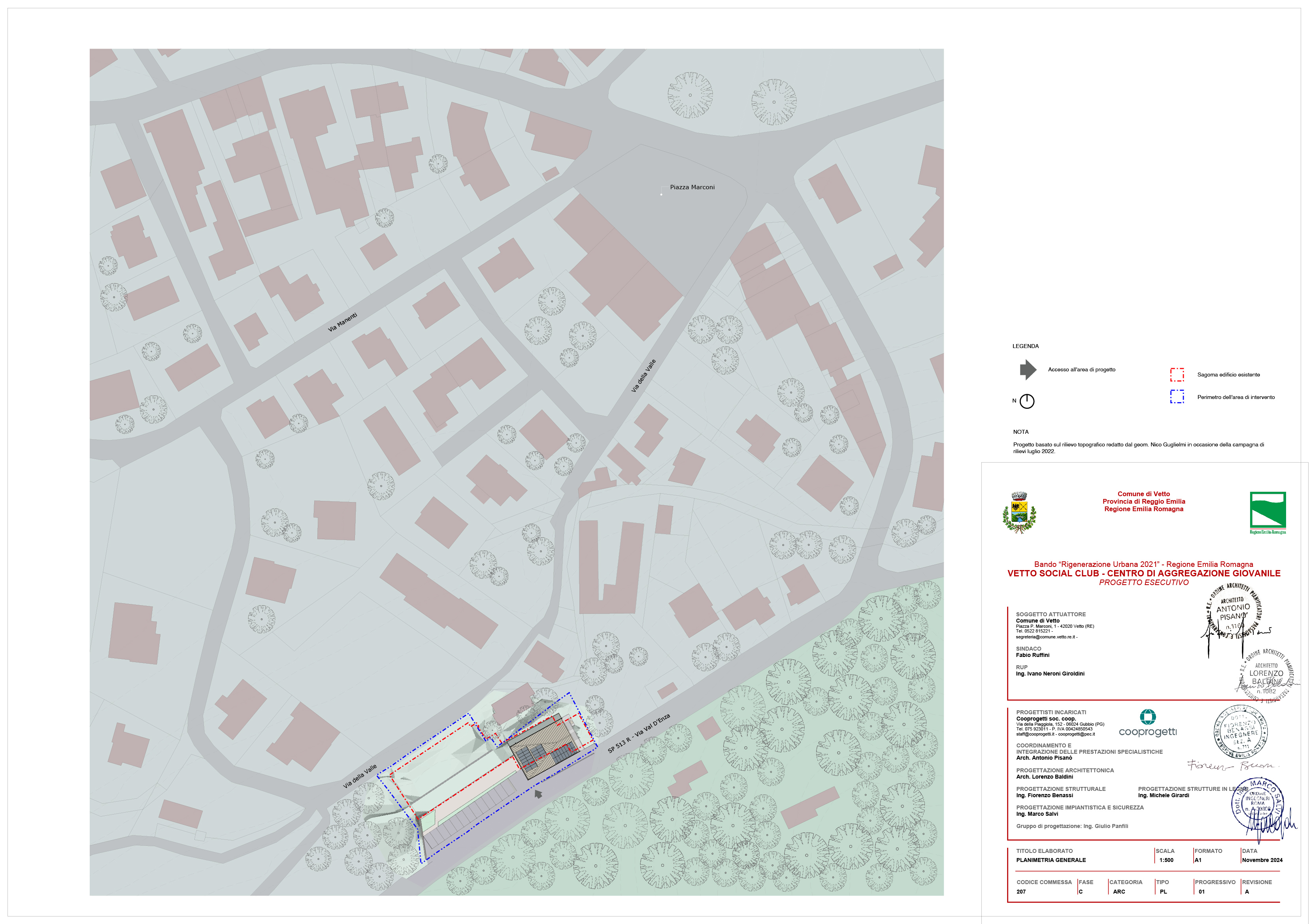 The Vetto Social Club has been envisioned during a participatory planning process, the Vetto-re di Idee - Towards a future of Sustainability and Hospitality. Vetto-re has engaged with the local community developing a map of urban regeneration opportunities. The process has taken over 10 months managing to continue also through the C-19 pandemic engaging with over 200 people, more than 10% of local resident population from students from the local schools to business owners to citizens and organisations. Vetto-re di Idee has categorised urban regeneration opportunities according to public buildings, private buildings, public spaces, green areas, hospitality venues, space for young people and public community assets such as community cooperatives. The Vetto Social Club emerged as a potential opportunity to acquire an empty and underused private commercial building right at the entrance of the small building. The original concept was to re-use the existing building. Further inspection has ruled out such opportunity due to its poor structural quality and safety and environmental risk of keeping the building up. The Municiplaity has further developed the urban regeneration concept whilst keeping the local community informed through public events both indoor in the town hall, outdoor in the town hall gardens and digitally using the Vetto Social Club social media channel. During spring 2025, ahead of the Vetto Social Club opening, the local community responsible for running the new public assets will be following a skill development course to maximise the potential for positive impact of the new community hub. The course will comprise hospitality management best practice, culture events management as well as digital marketing and sustainable tourism principles. Beyond the mere physical value of the built asset, the Vetto Social Club has proven an opportunity for local activation and up-skilling and regional marketing and communication.