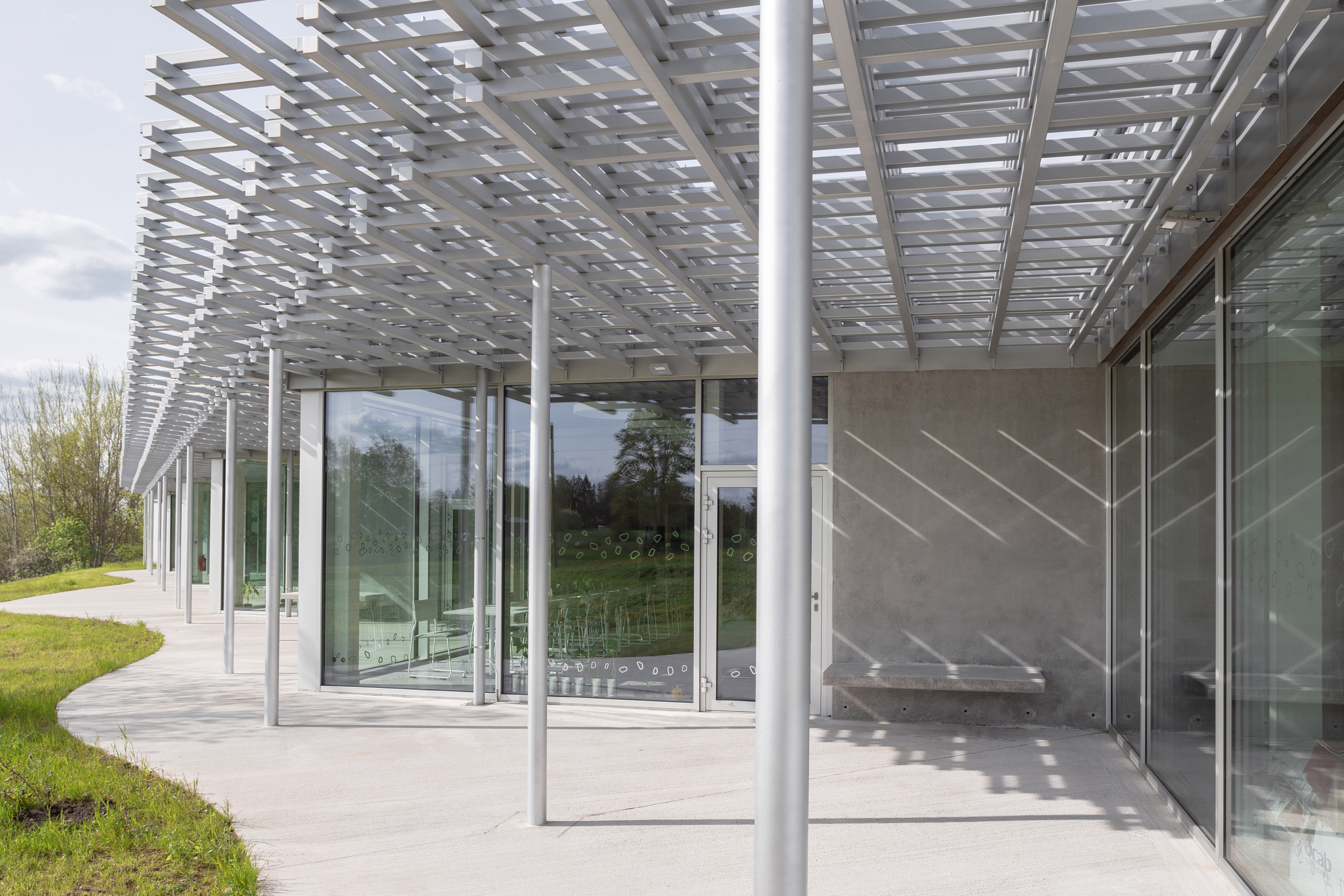 A special novelty of the project is the regeneration of the environment around excellent architecture, not creating man-made greenery, but leaving as much space as possible for the natural development of forests, meadows, bushes and riverbanks and creating a place for nature therapy.