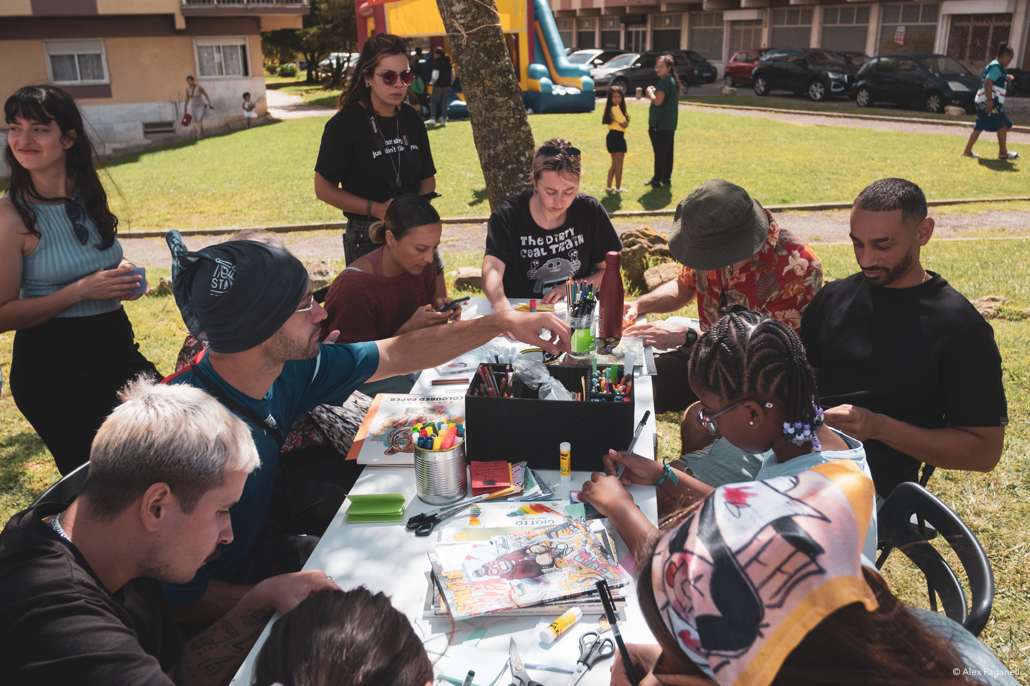 The “SDM Culture and Arts Festival” is an annual initiative organised by the PANGUE D’AMI, aiming to promote social inclusion, artistic expression, and strengthen community bonds in the Serra das Minas community in Rio de Mouro, Sintra, Lisbon, Portugal. This event celebrates various forms of art and culture, offering a platform for emerging artists, vulnerable youth, and small entrepreneurs. Held over two days, it provides live music, workshops, craft fairs, educational activities, and spaces for intergenerational interaction. The festival gathered mostly Afro-descendants from the Angolan, Cape Vert, São Tomé e Princípe, Guinea, and Mozambique nationalities, representing a truly multicultural happening. The specific objectives are: 1) social inclusion - designing accessible and safe spaces to all, promoting feeling of belonging; 2) youth empowerment - incentivising active participation; 3) Local artists development - provide a platform for local talent; 4) Community development - fostering intergenerational bonding union; and 5) Informal Education - offering practical and collaborative learning through artistic workshops. The event organised: i) “Tempo Para Brincar”, a safe space to play while promoting the right to explore the public space; ii) Fine Arts Workshops, to develop artistic skills; iii) Couture and Crochet Workshop, to explore the craft of traditional and artisanal textile sewing; iv) Biking Workshop, to learn how to repair and maintain bicycles, promoting the awareness of sustainable mobility; v) Craftsmanship Fair, exhibiting local fashion and textile brands, tattoo artists, and artistic scarves exhibition by local artists; vi) Live Art Exhibition, where a local artistic collective performed a visual and interactive piece; vii) Live Music Event, at jardim do mercado da Serra das Minas (local public green space in front of the former market). The Line-up included local artists like Batukadeiras de Olaias and DJ Limacox.