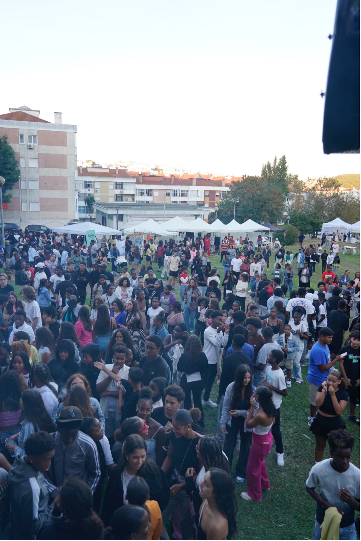 The SDM CULTURA E ARTES FESTIVAL is grounded in the Black african heritage experienced in Sintra municipality and so JIPANGUE wanted to design a festival to foster the sense of belonging of these vulnerable local communities but also to call other audiences to the place. This way the sense of belonging is achieved together and not exclusively obtained inside the neighborhood. The cultural values of the resident black communities were activated through interdisciplinary arts and connected across generations and cultures aiming for an enduring and strong social cohesion. The notion that aesthetics is a value that may be in place to incentivise the creation of new relationships was something that the SDM CULTURA E ARTES FESTIVAL attempted during the festival. Families were playing together in the green open and public space during the morning and early afternoon, and then artists exhibited and facilitated art and culture to expand the sense of belonging and the inspirational feeling commonly felt across artistic activities. As the day went by, the night showed the youngsters enjoying live music and dancing from the African influenced fusion music genres. Such an event is of primordial importance for the region due to the high multicultural nature of the residents. So, having spaces, time, activities, and local artists with this central role in activating the sense of belonging and promoting social cohesion is an example for all at the local, regional, and national level.