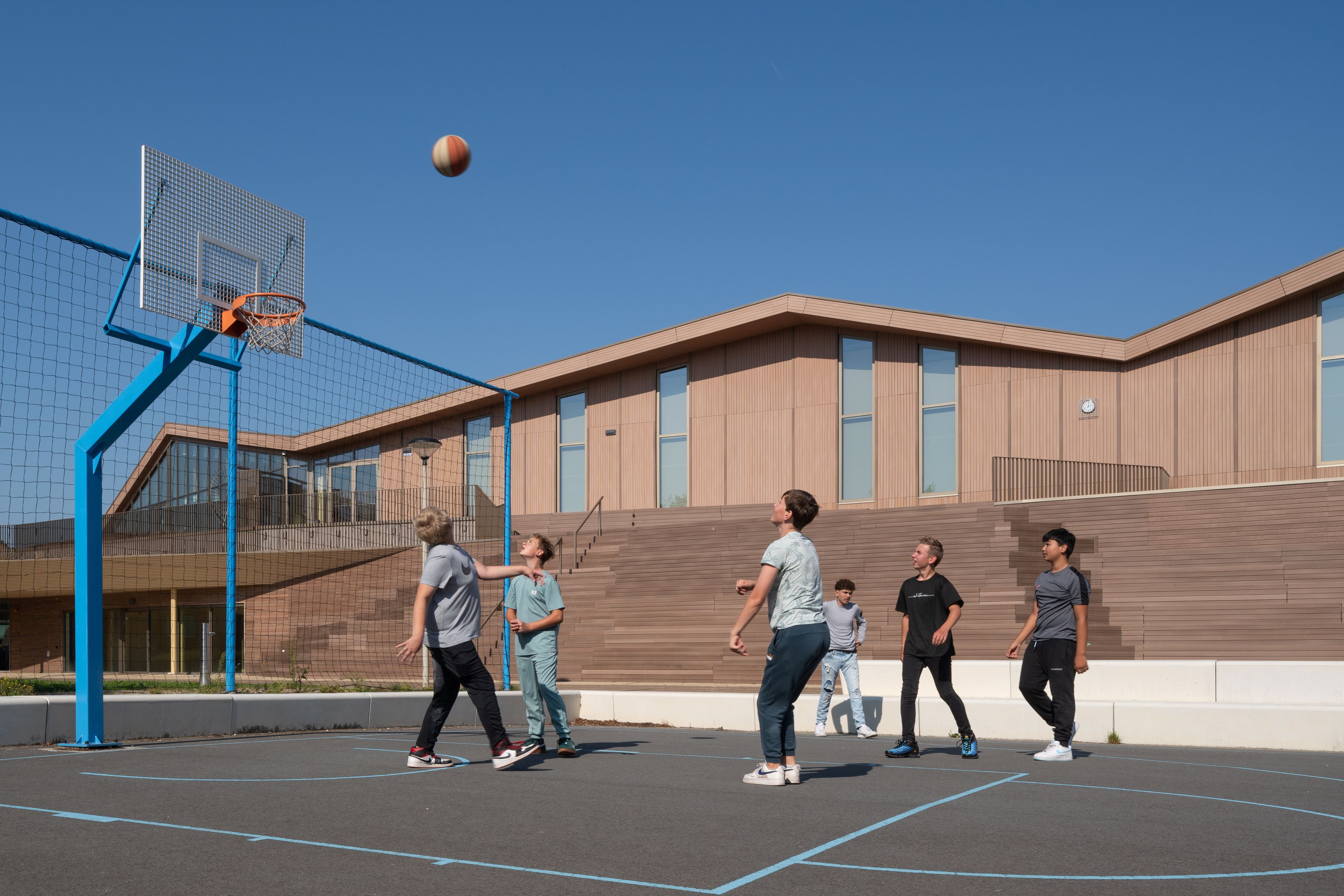 Instead of constructing four separate schools, each requiring its own facilities, we created a unified campus where every form of education retains its own identity. By bringing schools together in a single campus, we were able to combine and share facilities, granting students access to an exceptionally rich range of resources. The campus serves as a central meeting point and a hub for the community, fostering social connections and enhancing sports, cultural, and club activities in the area. It acts as a regional catalyst, with sports and social facilities accessible even outside school hours.