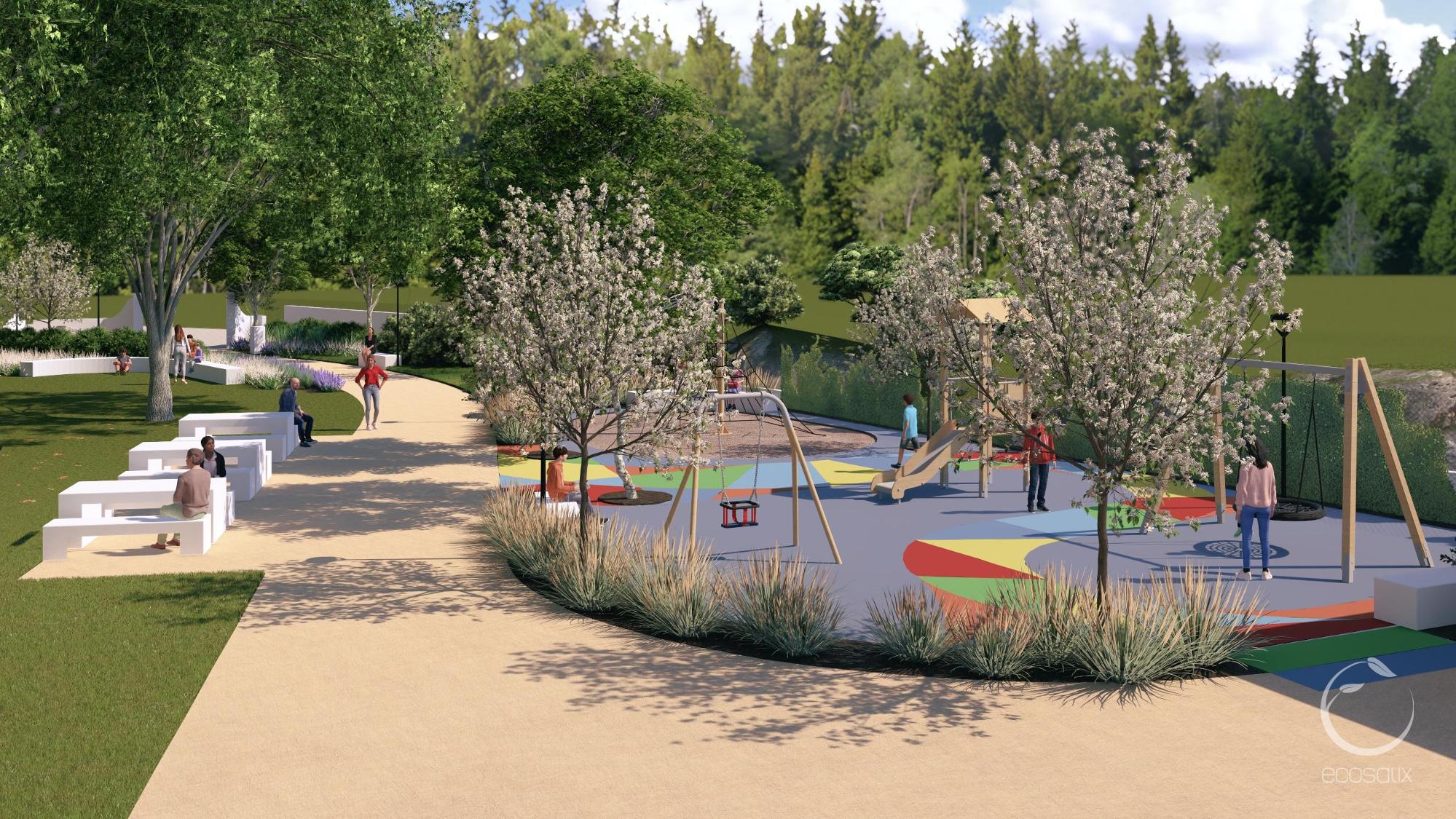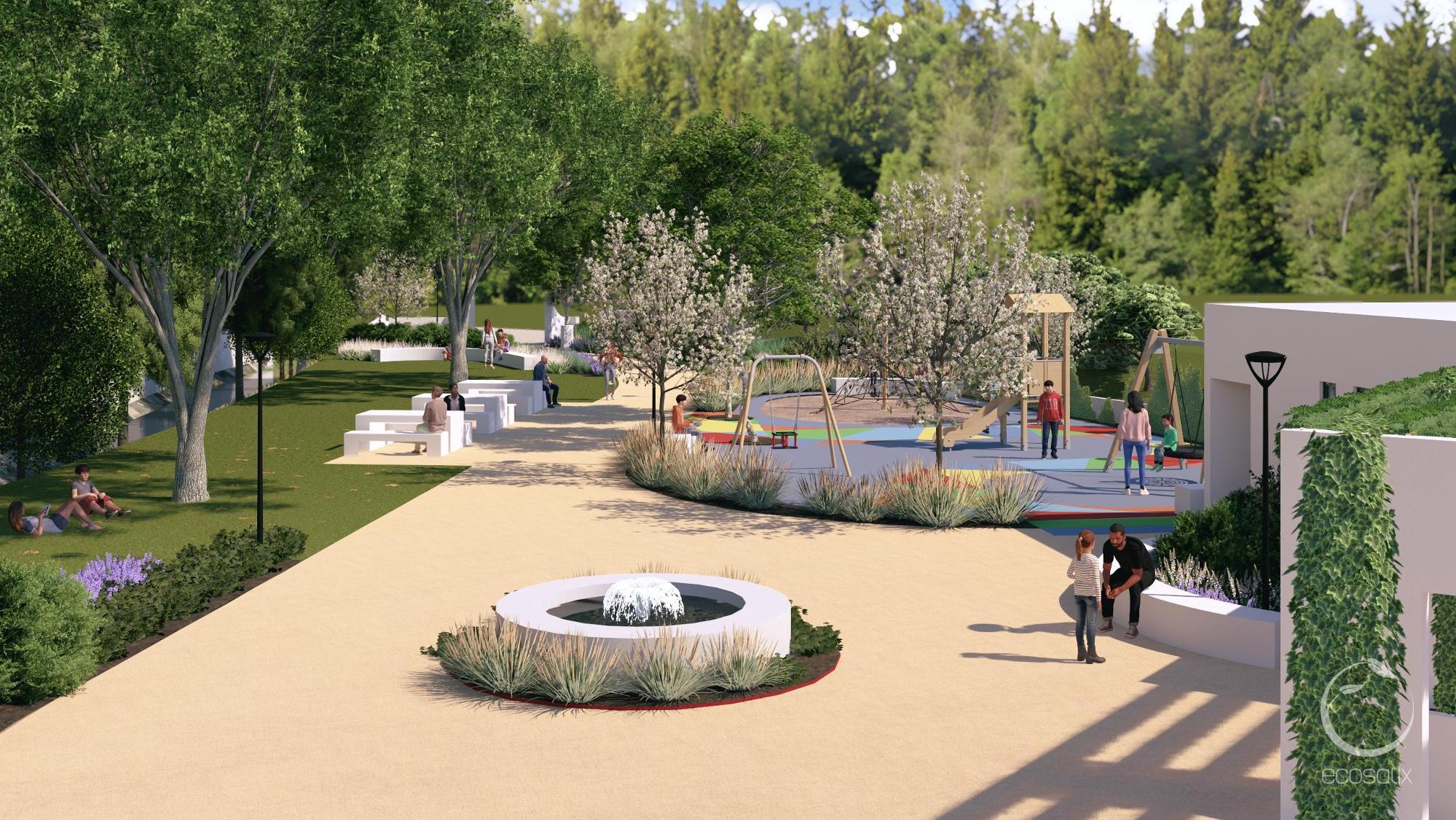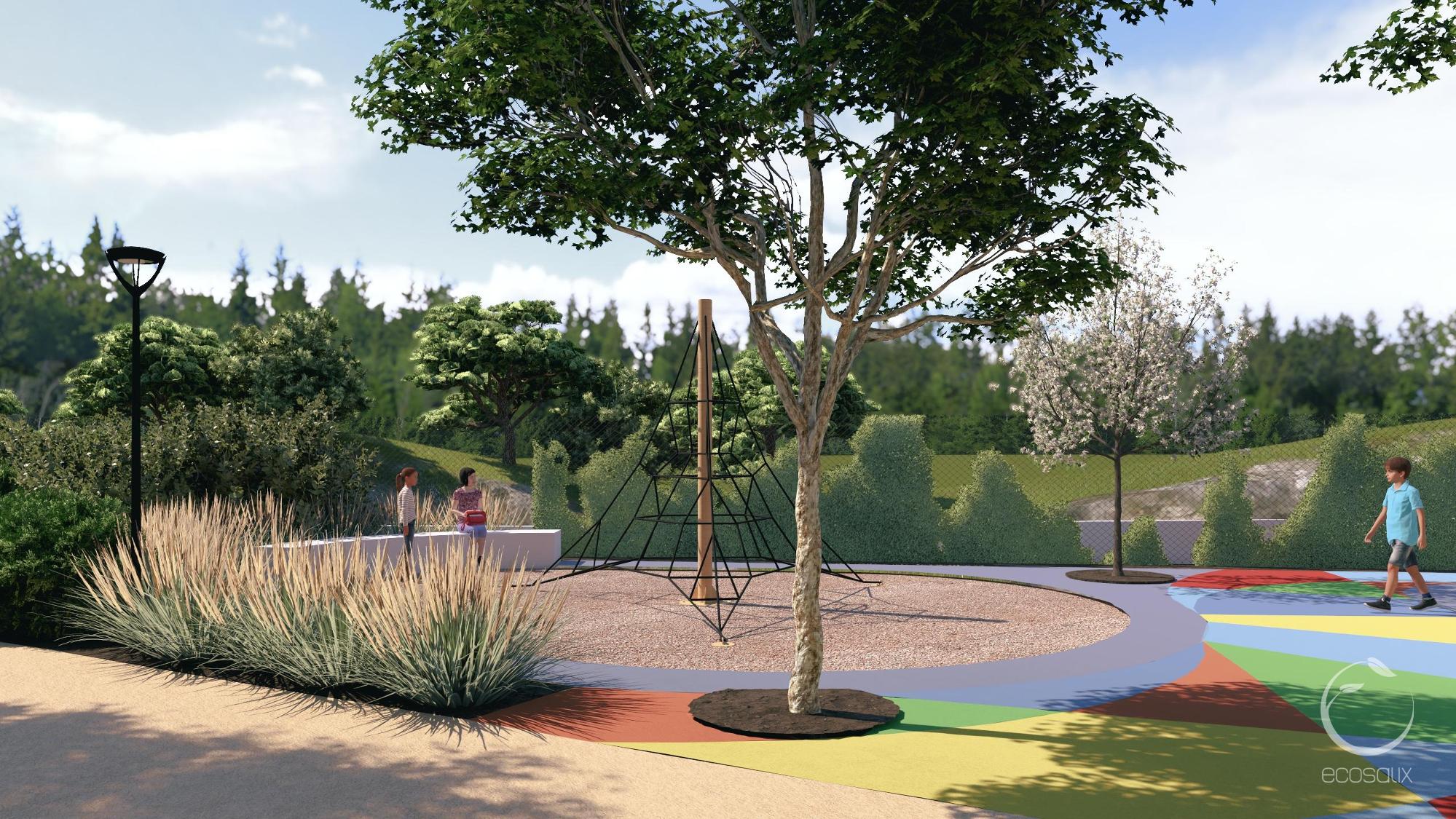 The park is designed as a multigenerational space, where people of different ages can interact. A modern playground will encourage play and socialization among children, while the revitalized sports field will provide a meeting point for youth and adults to engage in active recreation. Seniors will benefit, adding to the proximity to the Social Centre, from shaded areas, accessible pathways, and gathering spaces, ensuring they remain engaged in community life.