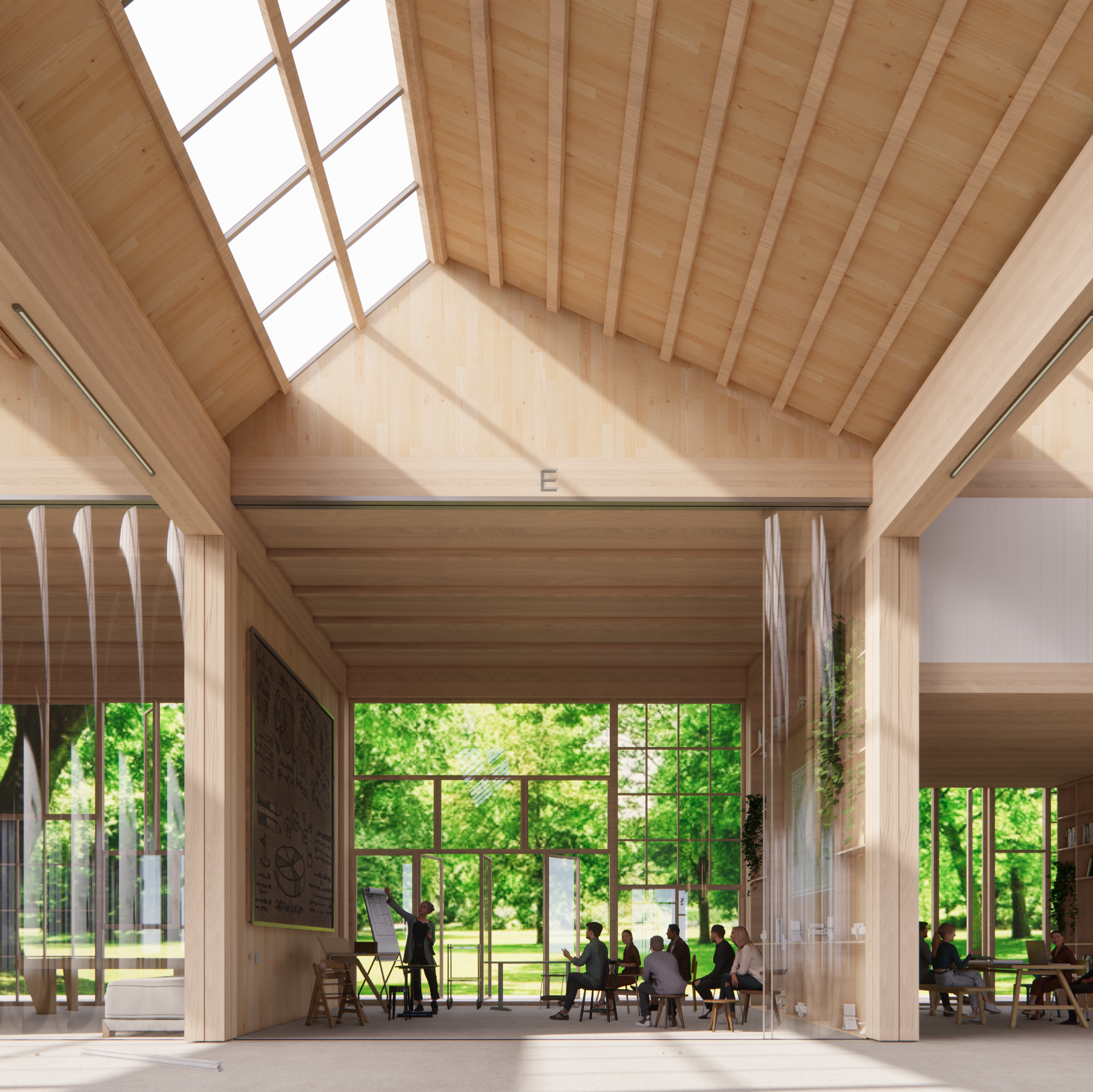 As a manifesto of circular principles, the building is an architecture that avoids waste in all its elements, using reclaimed timber as structure, reused window frames as skin, completely demountable system, it is inspired and developed by circular thinking itself.