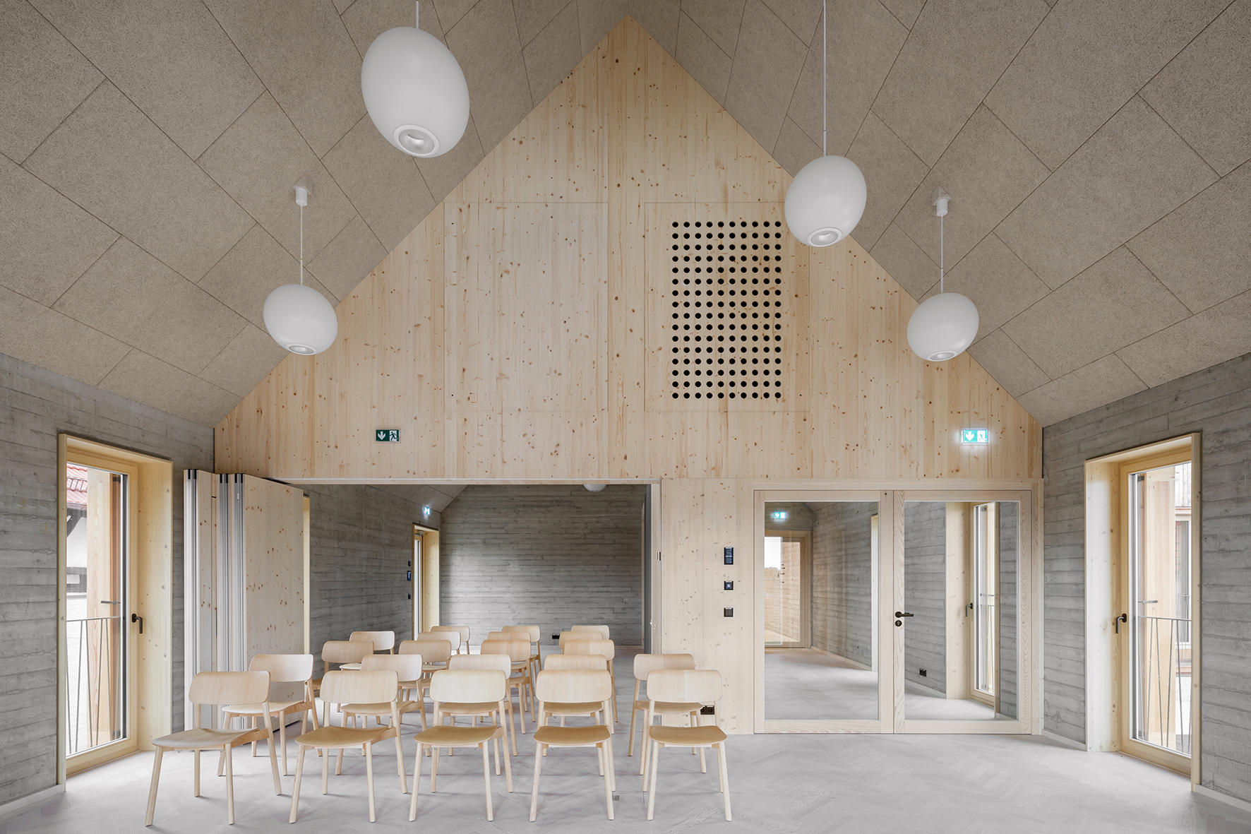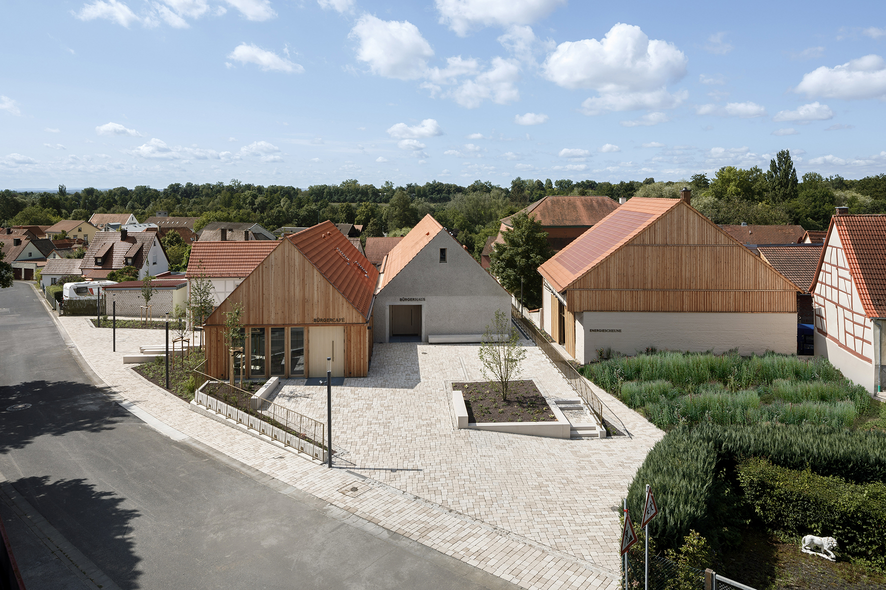 A new civic centre with a café, community spaces, a museum, a marketplace and a garden has been created in the heart of this small Bavarian village, between the old centre and the new residential area. To ensure the social and sustainable development of the town, the use of the spaces was defined jointly with the residents. The architecture is likewise sustainable: among other things it utilizes recycled concrete fabricated from a highway bridge that was taken down 50 kilometres away.