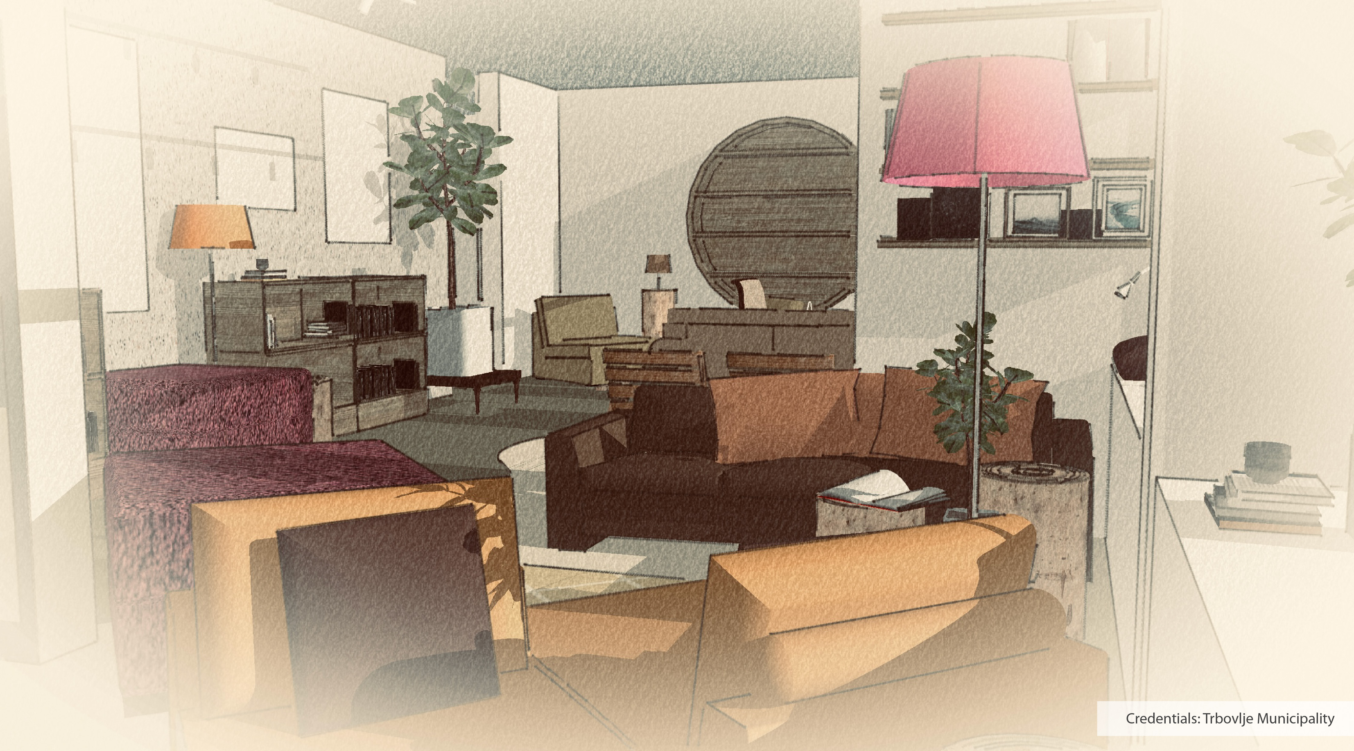 A key aesthetic feature of the space is its adaptive and modular design. designed for flexibility in use from individual reflection to dynamic community gatherings. High-quality, sustainable materials, such as wood, stone, clay plasters, and upcycled furniture, reinforce the commitment to healthier indoor environments while providing a tactile and visually appealing experience. The integration of community art installations and cultural elements further personalizes the space, ensuring it reflects the heritage, identity, and creativity of Trbovlje’s residents.