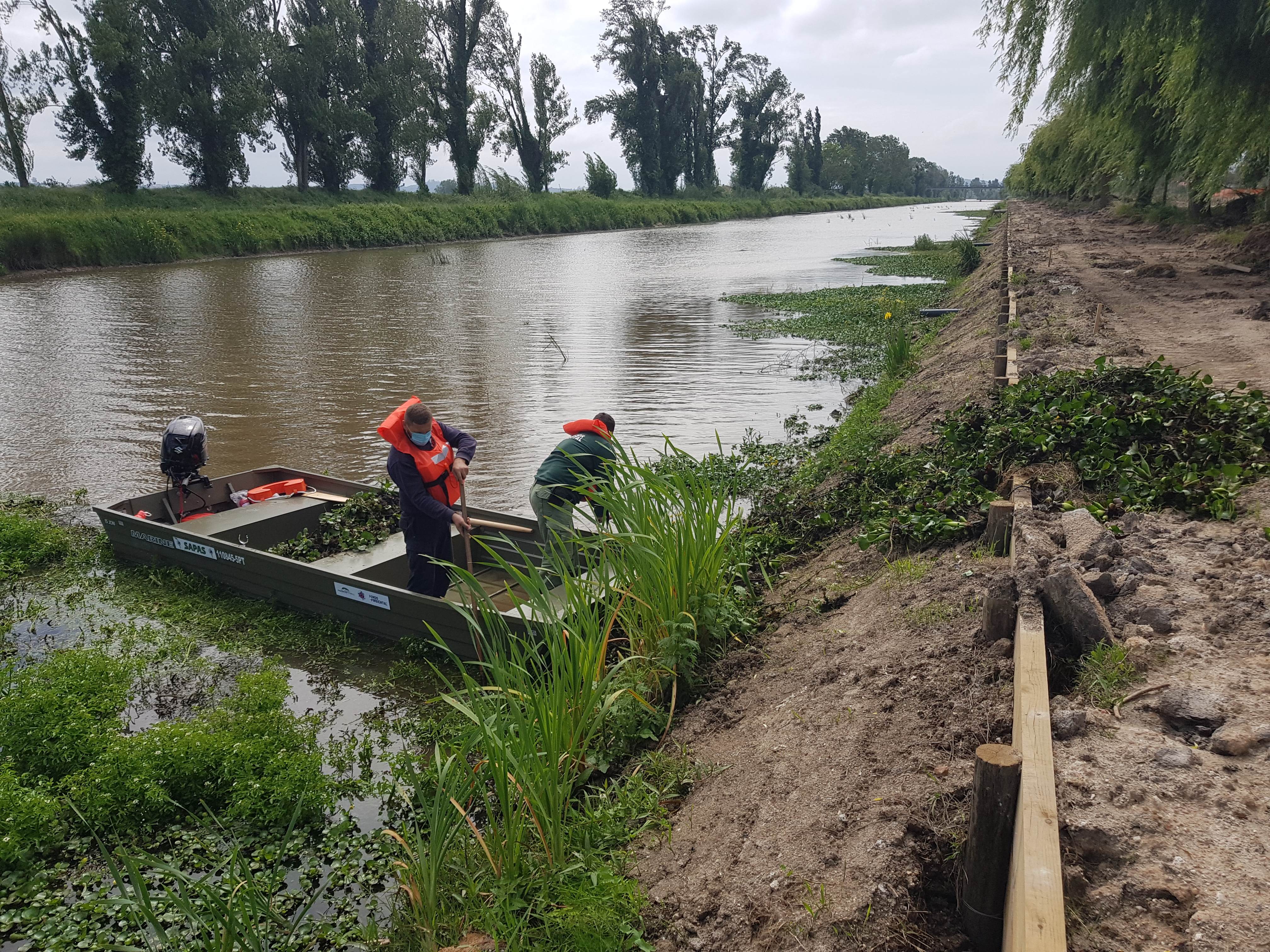On the bank slopes, bioengineering techniques were adopted for soil stabilization, namely live piles, with the reuse of natural wooden elements.