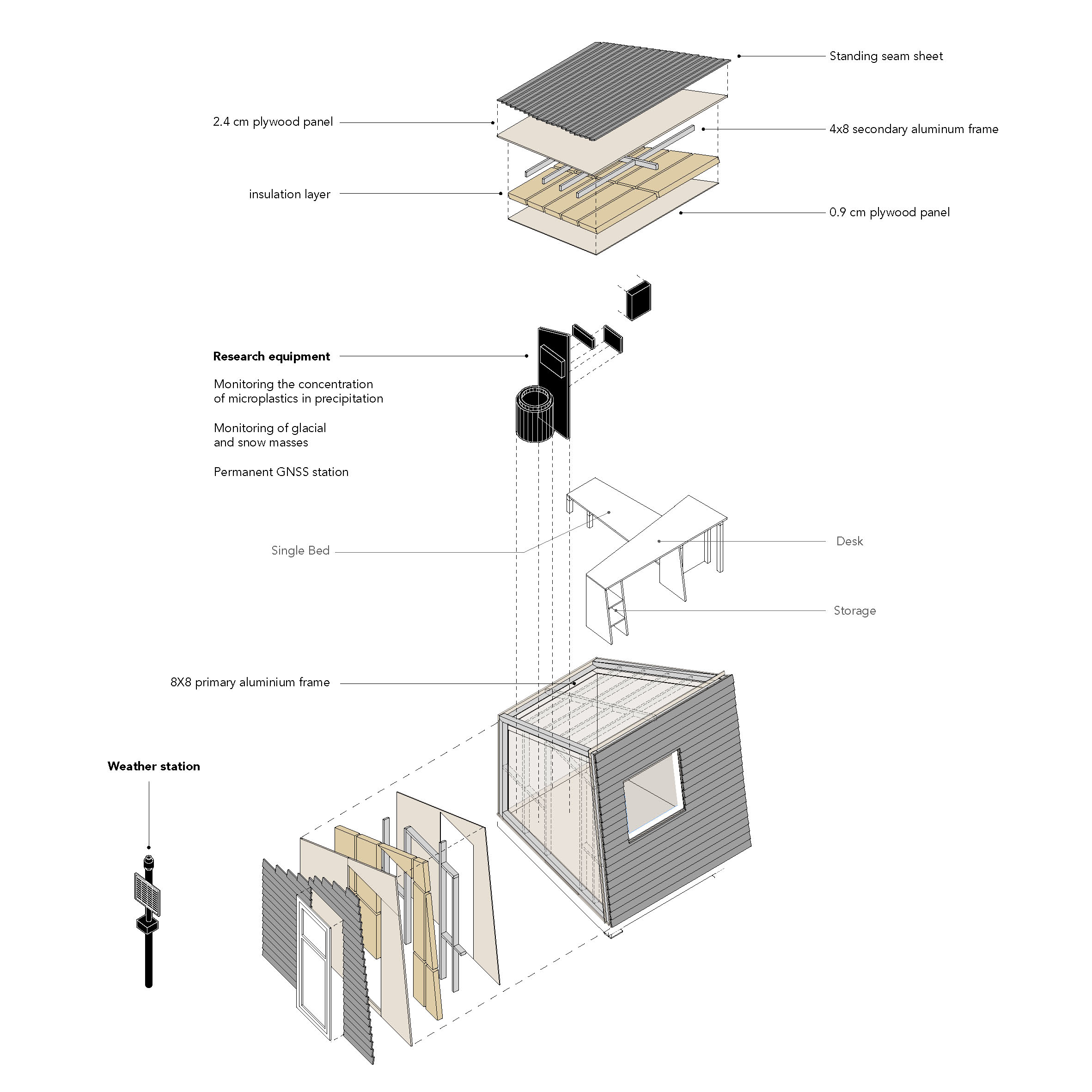 This scalability envisions a network of monitoring stations that would contribute to climate research and the conservation of mountain ecosystems. Innovation also lies in the attempt to merge the traditional role of the alpine bivouac with scientific research purposes, incorporating equipment and tools for study, monitoring, and data storage. The innovation extends to the participatory design process, as well as the decision to focus solely on recycled materials, aligning the project with sustainable practices and minimizing its environmental footprint.
