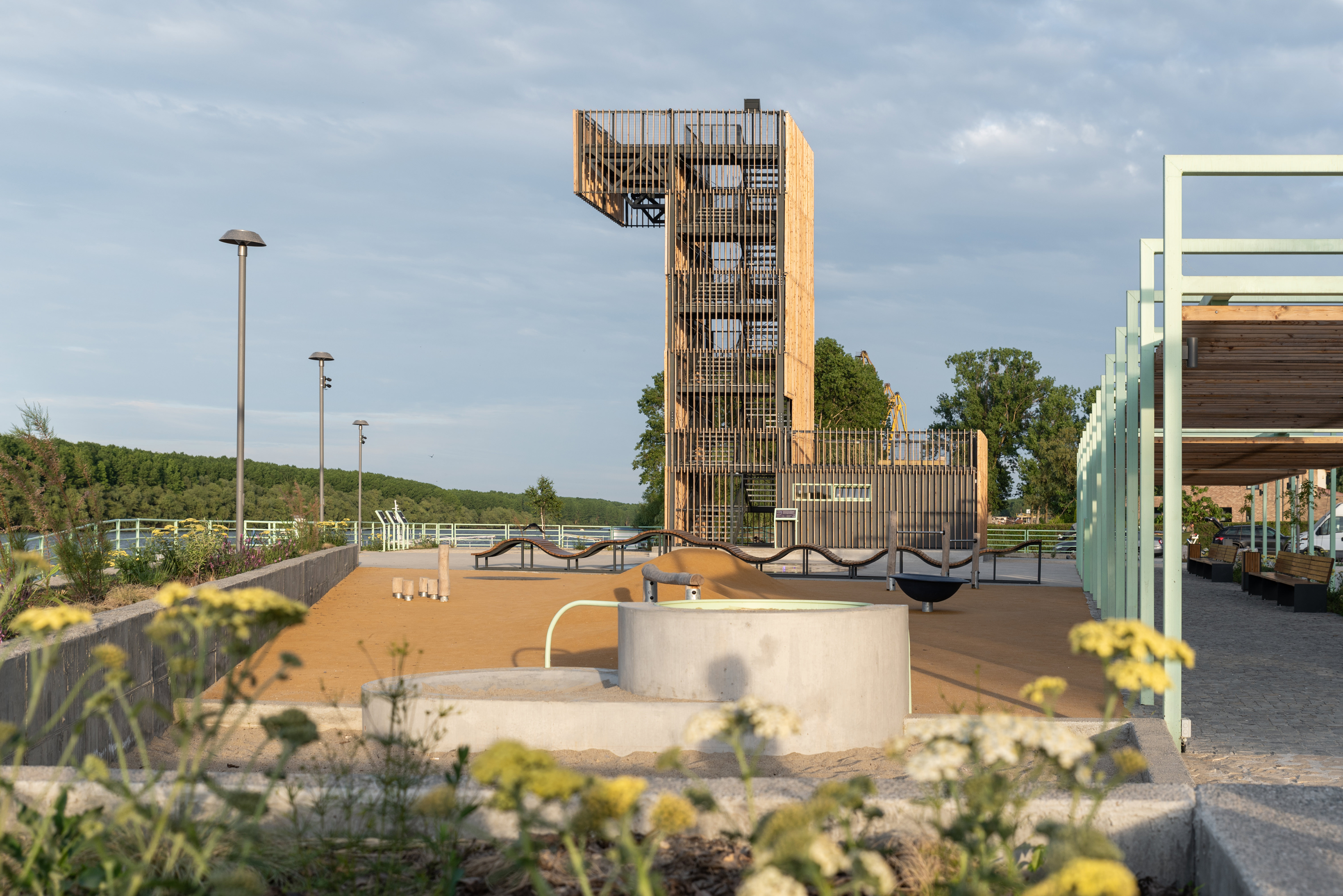 Key objectives include creating a flexible, inclusive public space, preserving natural features, and integrating accessibility through participatory methods. Outcomes include Romania’s first inclusive playscape, co-designed with children and parents (with and without disabilities), diverse seating and gathering areas, an inclusive wayfinding system, and custom designed accessibility solutions. A multi-functional community pavilion and a watchtower further encourage intergenerational and cross-cultural engagement.