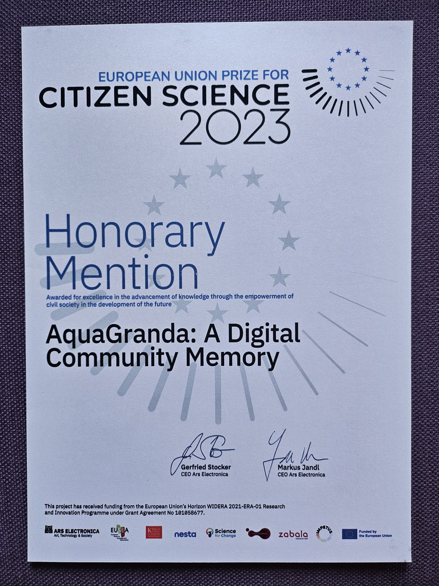 AquaGranda counts in terms of results: more than 45,000 data entries collected from citizens and web sources, forming a rich digital community memory; a dynamic and growing online archive, ensuring long-term accessibility of collective memories; three exhibitions (“Navigating AquaGranda” 2021, “On Waters” 2022; “Operative Stratigraphies” 2023); three educational competitions involving elementary, middle, and high school students, fostering creative engagement with climate-related issues; more than 40 public events, including workshops, labs, scientific cafés, movie screenings. The project successfully transmitted its core values and messages by engaging: more than 50,000 people reached through Ca’ Foscari University of Venice’s media channels; 5,000+ followers across AquaGranda’s social media, website, and newsletter subscriptions, with engagement peaks around every annual November 12th anniversary; with the project’s launch video (on Ca’ Foscari University’s YouTube channel) that reached 7,722 views, becoming one of the top-performing university videos in 2020. In terms of impacts, AquaGranda successfully involved 100+ schools in active participation, by integrating the project into their educational curricula having the annual school competition inviting students to create artistic and narrative outputs related to the high tide, which were then showcased online and in exhibitions; high school students engaged in an oral history laboratory, conducting interviews with elders about the 1966 high tide, preserving intergenerational knowledge; and teachers highlighting the project’s unique educational value, as it combined both scientific analysis and emotional storytelling, deepening students’ understanding of climate change and their role in addressing it. The Ars Electronica Festival awarded AquaGranda an Honorary Mention for Citizen Science (2023), recognizing its innovative approach to integrating scientific data, artistic expression, and public participation.