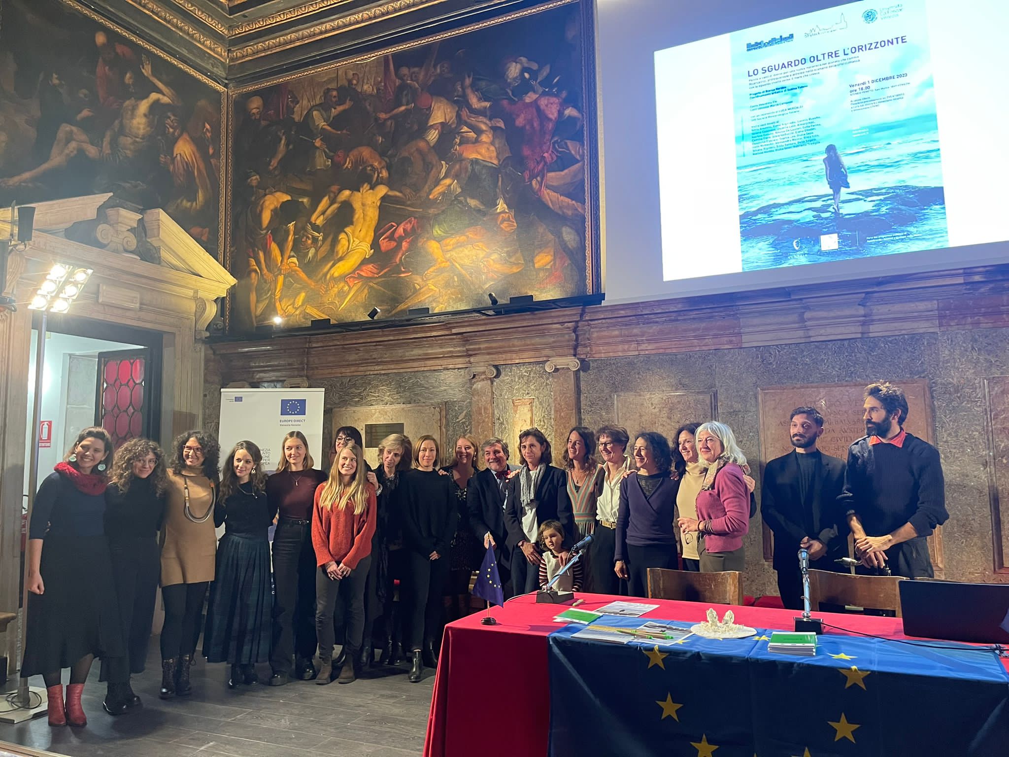 AquaGranda provides an inclusive and participatory approach in all its initiatives, ensuring that all voices, experiences, and perspectives are valued through a citizen science approach. Extensive content on the 2019 aqua granda was spontaneously shared online on social media, but many people had digital materials not publicly available. Researchers interacted with Venetians to collect memories also from people who are digitally illiterate. AquaGranda thus became a hybrid platform between the virtual and the real, where every memory and experience collected was considered essential, creating an unprecedented mosaic of shared fears, resilience, and adaptation stories. This open and participatory model empowered people not only as spectators but as active contributors, making the project deeply inclusive. To enhance physical and cognitive accessibility, exhibitions, events, and discussions were entirely free of charge, removing financial barriers and democratizing participation. Integrating the project into Venice’s public transport system further ensured equal access. Through co-created projects, these individuals were not only acknowledged but actively given space to express their lived experiences, reinforcing a culture of social justice and equal representation. We hosted conversations with climate migrants, organized with Euclipa and C.T.R. Venice, highlighting their experiences and perspectives; scientific discussions on the MOSE system and the future of the lagoon, featuring researchers from CNR ISMAR and IUAV; literary readings curated by Shylock CUT, exploring the intersection of gender, climate change, and environmental responsibility; a special screening of “Lagunaria” by director Giovanni Pellegrini, offering a cinematic journey through Venice’s transformation; and a community-driven storytelling, where residents and former Venetians shared their memories related to high tides as poems or short stories, strengthening intergenerational knowledge.