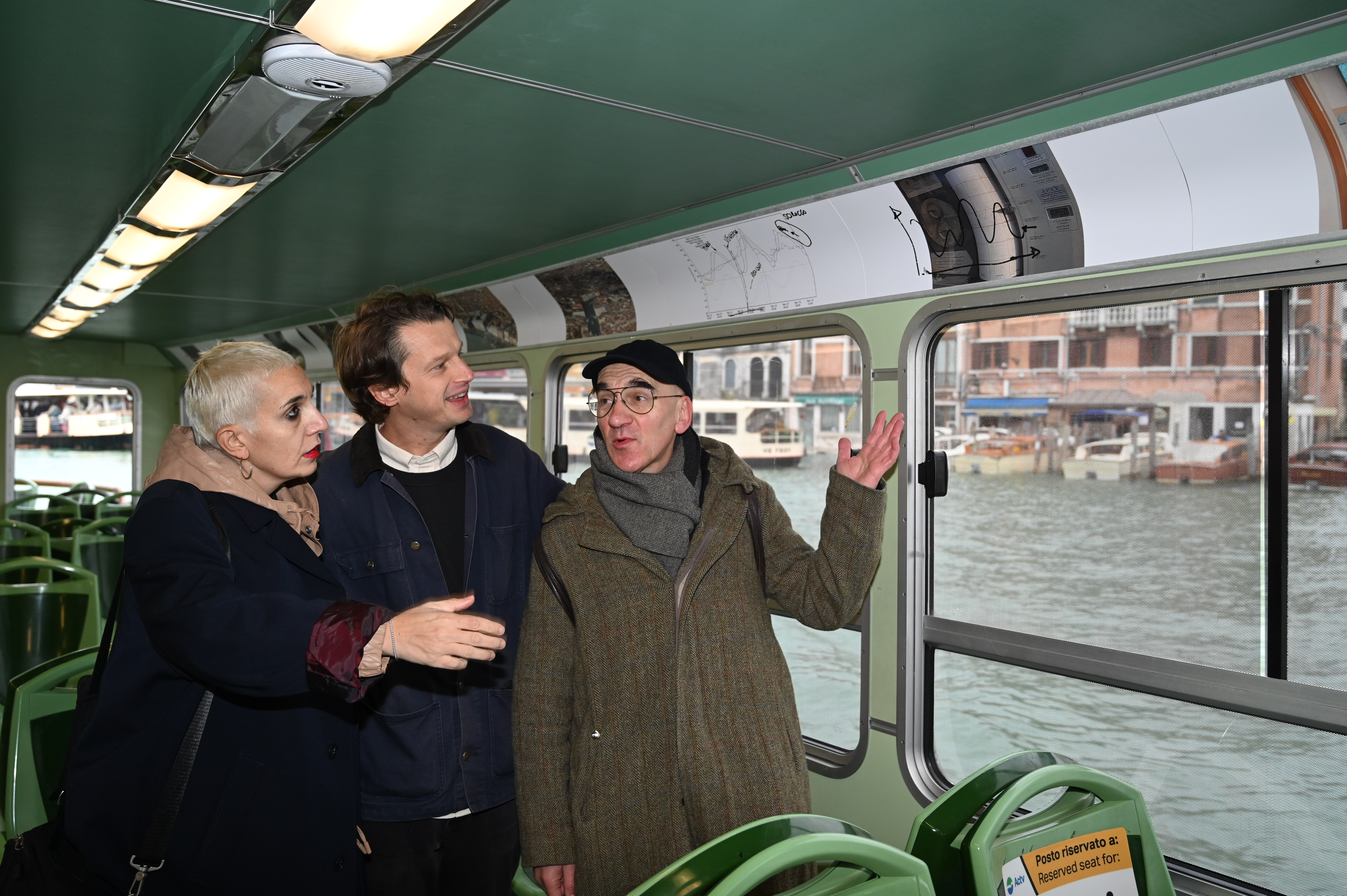 “AquaGranda, a Digital Community Memory” is a project that transforms the collective memories of Venice’s catastrophic floods into an opportunity to rethink the city’s relationship with water, climate, and nature. In November 2019, Venice was subjected to ‘aqua granda’ (big water), where over 90% of the city and its nearby islands were completely inundated. It was a truly catastrophic event. AquaGranda reflects on the impacts of exceptional tides and waters to shift their perception from a mere urban infrastructure to living elements that shape the city’s past, present, and future. By blending art, science, and community participation, the project encourages to move beyond a human-centered perspective and recognize the deep interconnection between Venice and its fragile natural environment to question the city’s survival in the long run. One of its most striking art-science interventions in 2023 was “Operative Stratigraphies,” a hacked public waterbus featuring the work by Giulia Bruno, Armin Linke, and Lorenzo Mason. The waterbus (vaporetto), usually just a means of transport, became a space for collective awareness, making environmental concerns visible and accessible to all. The vaporetto appeared as a floating sculpture, navigating through the city’s canals as a powerful, moving symbol of Venice’s resilience and vulnerability. This public work of art broke into daily life and invited thousands of passengers and onlookers to reflect on rising sea levels, environmental degradation, and the urgent need to restore the balance between human activity and nature. Together with a rich public program, “Rooted in waters,” citizens, who are often excluded from key urban and environmental decisions, became active contributors to discussions about protecting Venice’s delicate ecosystem, along with scientists and artists.