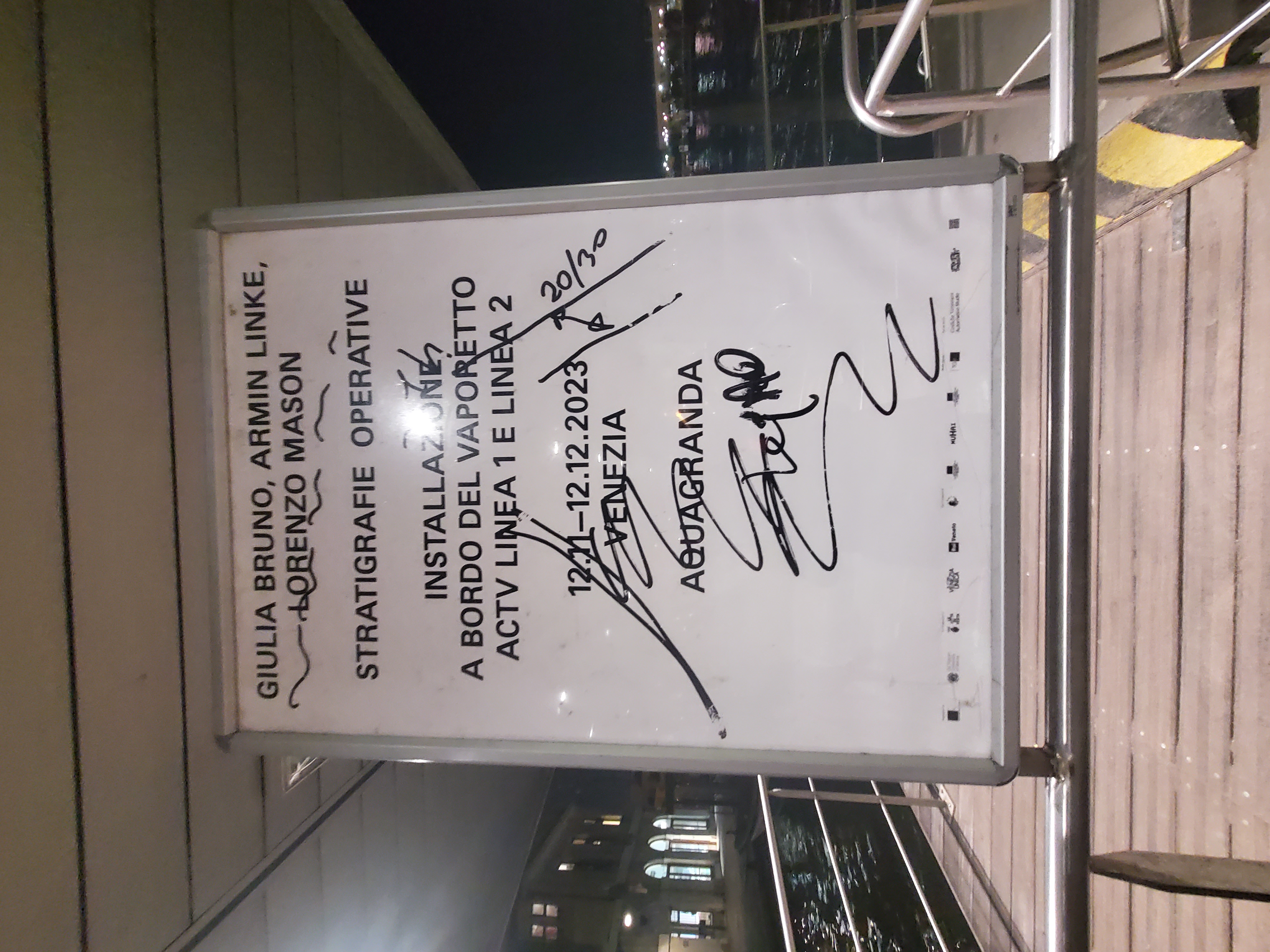 AquaGranda embodies regenerative sustainability by acknowledging how environmental contexts influence worldviews, behaviors, and urban paradigms. By immersing participants in the evolving relationship between Venice and its lagoon, the project stimulates a paradigm shift—one that moves beyond the illusion of controlling nature and encourages a deeper reconnection with the lagoon ecosystem and its water movements. AquaGranda’s digital community memory archive ensures that Venice’s unique “tide culture” is not lost despite large-scale infrastructural and technological interventions like the MOSE movable dam system. Although MOSE is preserving the city from future aqua granda, its longevity might be shortened due to climate change. This is why this community memory is key in preserving the stories of these catastrophic events. AquaGranda is a sustainable cultural infrastructure, preventing historical amnesia and allowing future generations to learn from past experiences. "Operative Stratigraphies," with its hacking discrete approach, transformed daily commutes into moments of reflection. The vaporetto invited thousands of residents and tourists to visually and emotionally engage with the impact of climate change and rising sea levels, looking at the operative images institutions use to support communities during natural disaster rescue operations. The public program “Rooted in Water” created a space where scientists, artists, policymakers, and citizens could discuss pressing climate challenges and envision the future of the lagoon together. With events ranging from scientific discussions on MOSE’s long-term sustainability to literary readings on climate resilience, the program fostered a collective sense of responsibility and futuring toward a post-anthropocentric idea of life in the city of Venice, its waters, and its lagoon.