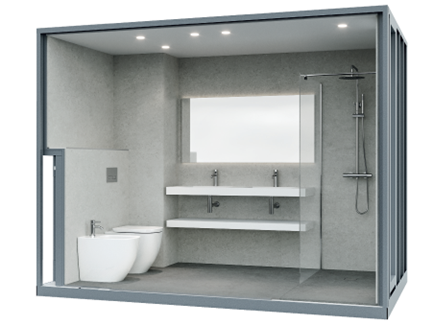 Another major challenge is environmental sustainability. The construction industry is responsible for a large percentage of global carbon emissions and material waste. INDUSBATH addresses this by integrating low-carbon materials, circular economy principles, and energy-efficient fixtures, ensuring that each modular bathroom reduces environmental impact. The plug & play system further minimizes waste by optimizing resource use and avoiding common inefficiencies in traditional construction.