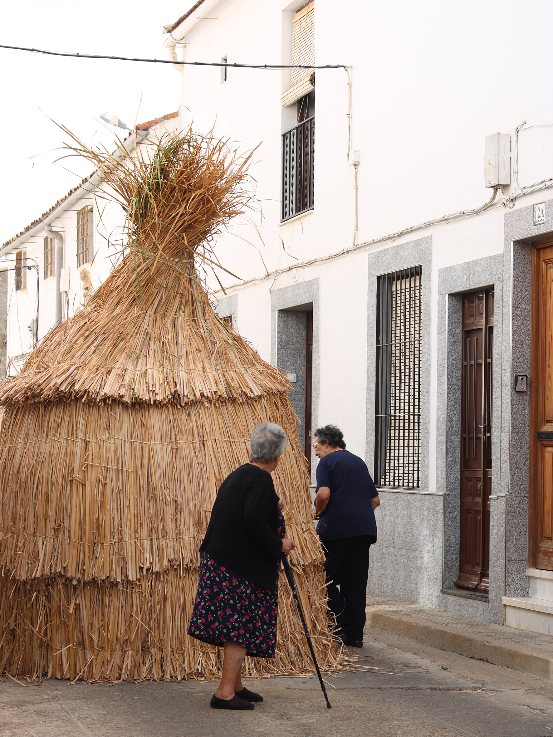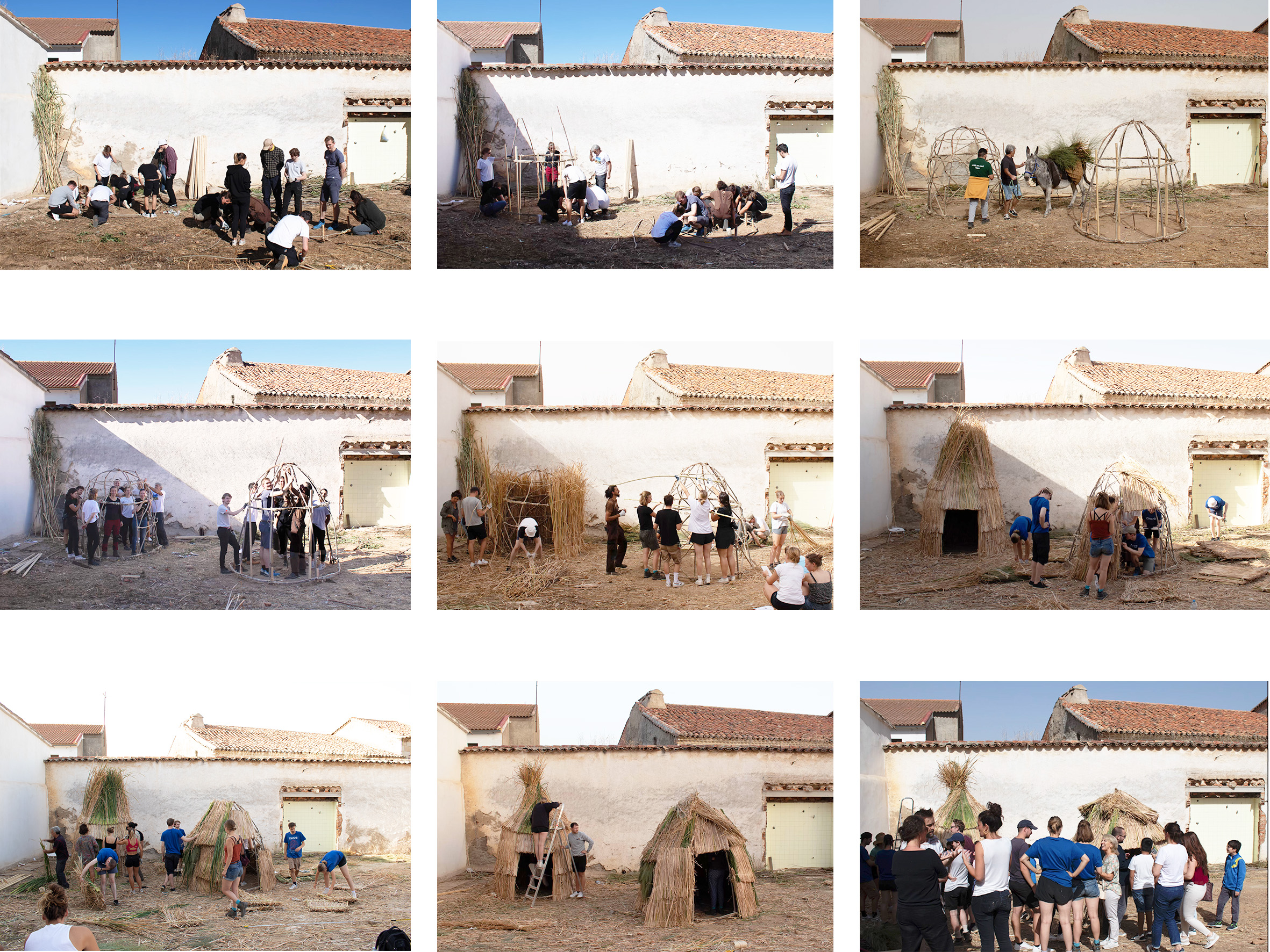 A local group of bio-construction experts played a key role in organizing material collection, storage, and the building process of the two chozos. Additionally, researchers on cohabitation introduced a new perspective, explaining the relationship between animals and human spaces, shifting the anthropocentric view of architecture. The Municipal Environmental Officer of Cabeza del Buey guided the team through the local ecological system and biodiversity, providing expertise that enriched the project’s environmental awareness.